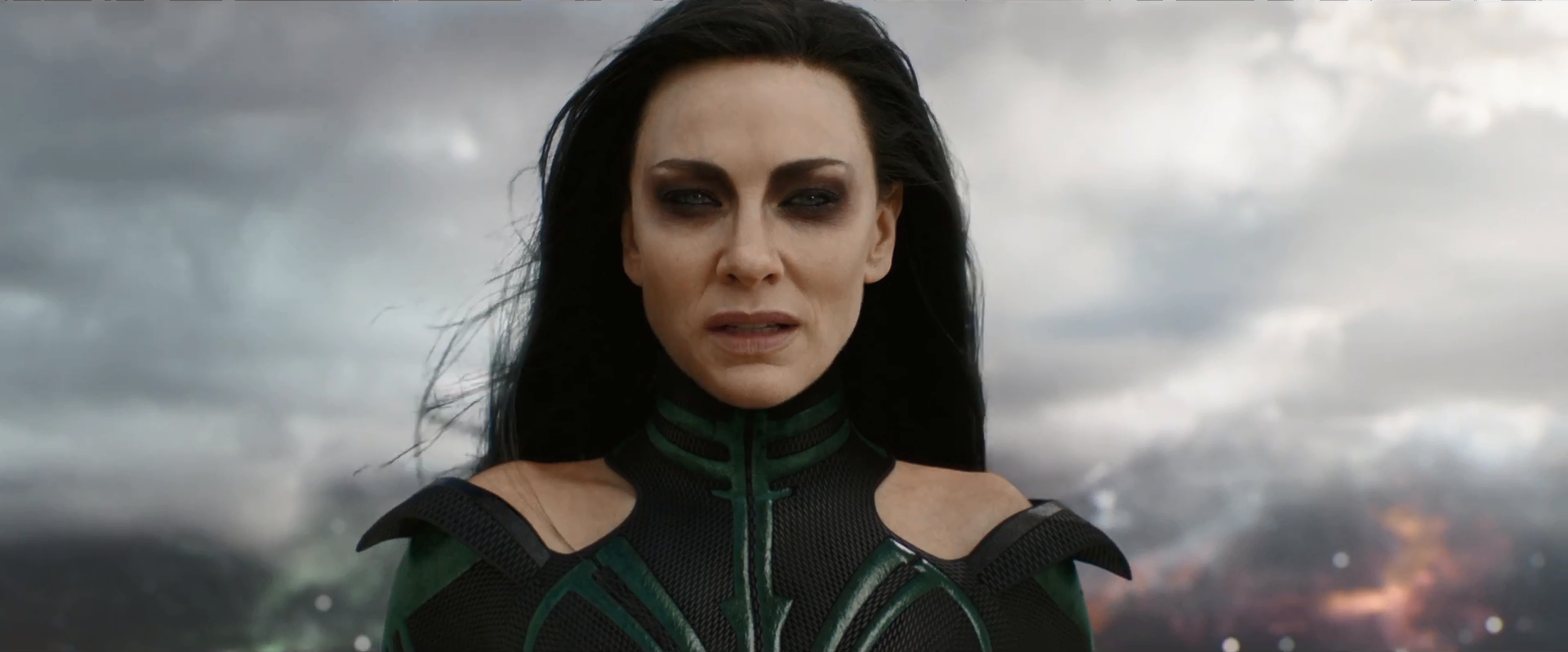 Having eventually recovered from Thor's incredibly powerful blast of lightning, Hela arrived onto the Rainbow Bridge, where she had then discovered that her army of Berserkers had been overpowered, due to the arrival of both Loki and the Sakaaran Rebellion. As Hela took her time walking back to the Bridge, she was challenged by Thor and Valkyrie who were discussing how they could possibly hope to defeat Hela, who was clearly more powerful than any of them.