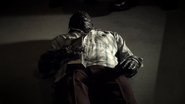Werner Reinhardt had this man captured and allowed him to touch the Obelisk to see the results. The man touched the artifact and became petrified. Hydra scientists documented the results as Reinhardt had the body of the man removed.