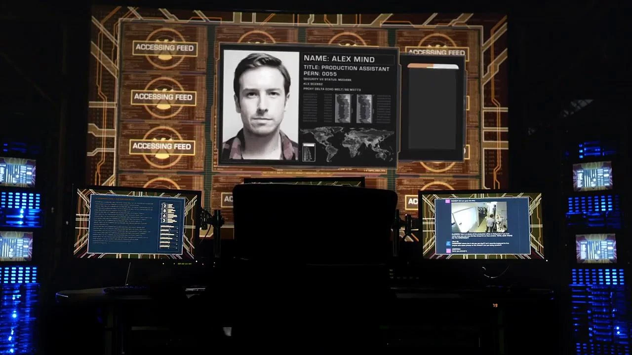 Sam was replaced by Alex Mind, with delivering lunches becoming part of Mind's job. The Mastermind told Mind to use the new position as an opportunity to break into Chris Cheramie's office and download the finale. He distracted Daniel Spilatro by not having his lunch and got into Cheramie's office, initiating the download. However, Dirk appeared and caught him, leading Dirk to realize that Mind was a traitor. Mind slammed the door and finished the download, leaving through the vent before Dirk could reopen the door. He fell out of the vent and ran through the studio, passing Chloe Bennet recording her automated dialogue under the direction of Cheramie and Robert Parigi.