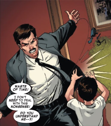 Though having learned more of Howard's flaws and shortcomings, Stark still retained lingering issues with his father using his parenting as an excuse for being such a strict mentor to Spider-Man. He was aware of this flaw, however, and consciously attempted to grow out of it. During the Time Heist, after talking with his alternate father Howard and realizing how difficult it was for Howard to raise him due to having an abusive father as well and having had experiences as a father, Tony finally came to reconcile with Howard and even shed his façade temporarily by hugging his father and saying that he loved him.