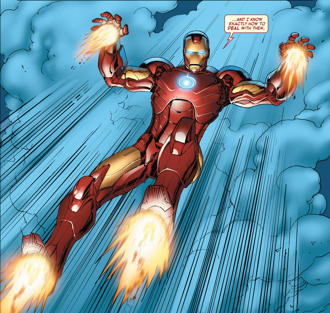 Superhuman Reflexes: While not on par with that of someone with genuine superhuman speed and reflexes like Spider-Man, Iron Man's armors nonetheless had motors for movement, and they were extremely fast and responsive both in flight and during combat, even against physically enhanced opponents such as Captain America or the Winter Soldier. The suit's coordination and dexterity allowed the user to easily maneuver themselves and change directions with great ease during flight.
