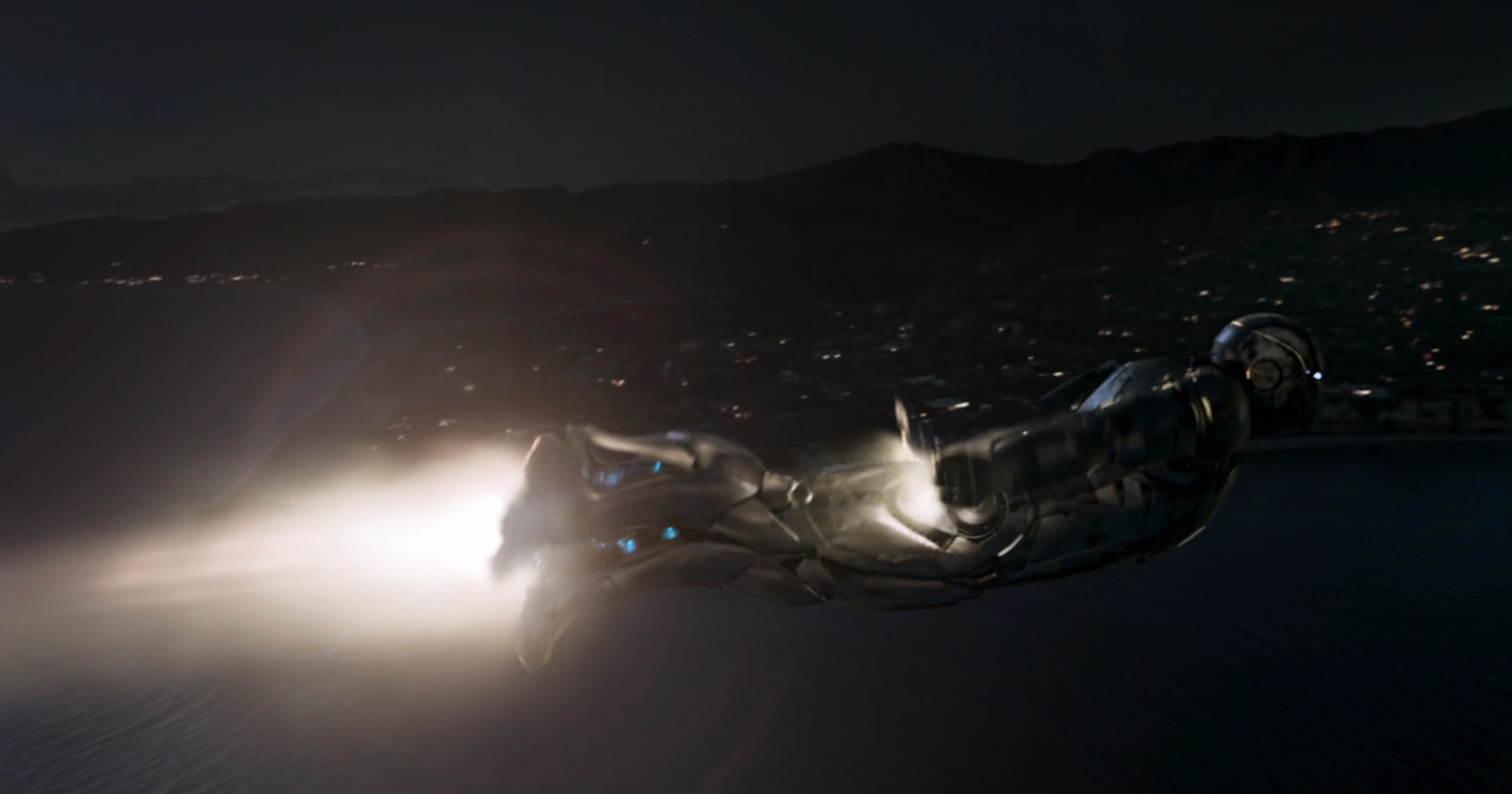 Stark cheered in utter delight as he soared high across the sky over California and shouted out in gratification at his success, using the mask's system to zoom into the city where a young boy looked on in amazement upon seeing Stark. However, when he pushed the suit to see how high he could fly in an attempt to beat the Lockheed SR-71 Blackbird's record, he learned the suit would freeze at such a high altitude, which disabled its power. Stark fell from the sky, only being able to restart the suit moments before nearly hitting the ground, with Stark exhilarated at avoiding such a near miss.