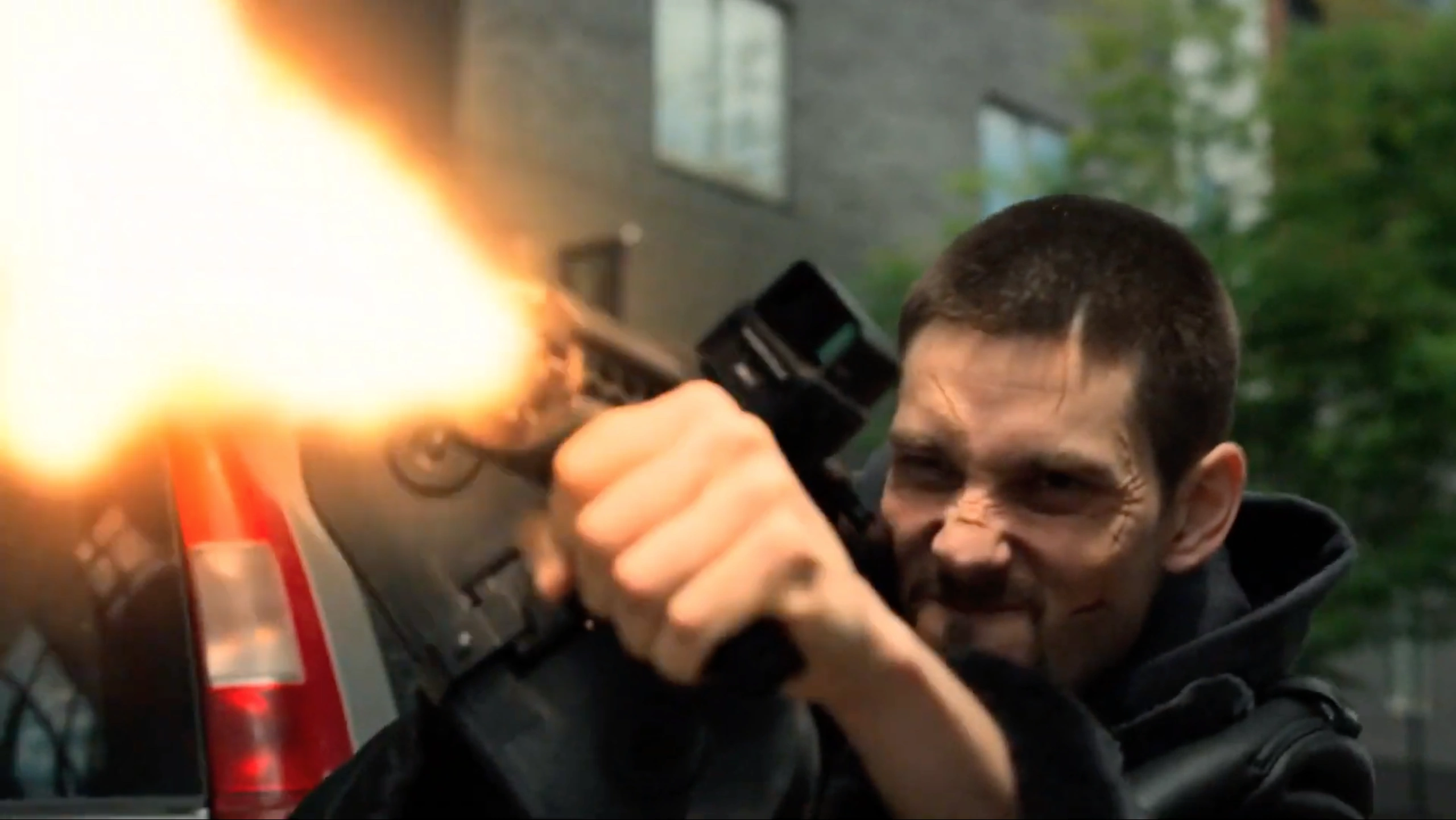SIG Sauer P229R: Russo took William Rawlins' sidearm once he tricked him into leaving on a table by trying to prevent him going on with the torture on Frank Castle. Russo then tried to kill Castle with the handgun once he had murdered Rawlins, and was only stopped when he was injured in the arm by the incoming Homeland Security agents.
