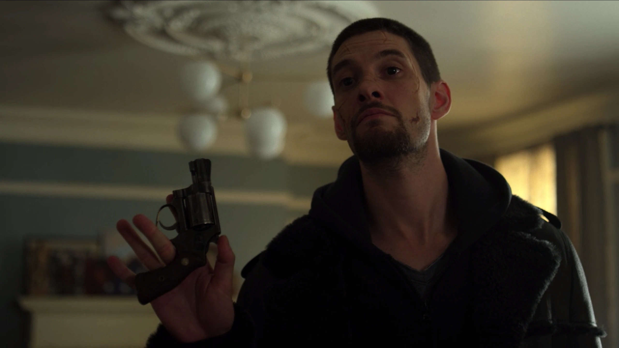Krista Dumont owned this revolver and she kept it in her apartment. Russo found it while he registered the apartment, and took it to see Curtis Hoyle, ambushing him and threatening him with the gun to disarm him and protect himself, though he also told Hoyle that he had no intention of harming him with the gun. Russo kept the revolver, and ended up using it to beat the tow truck driver that had taken Jimbo's car. Dumont later looked for it while she was arguing with Russo, but Russo showed her the weapon, keeping it for himself.