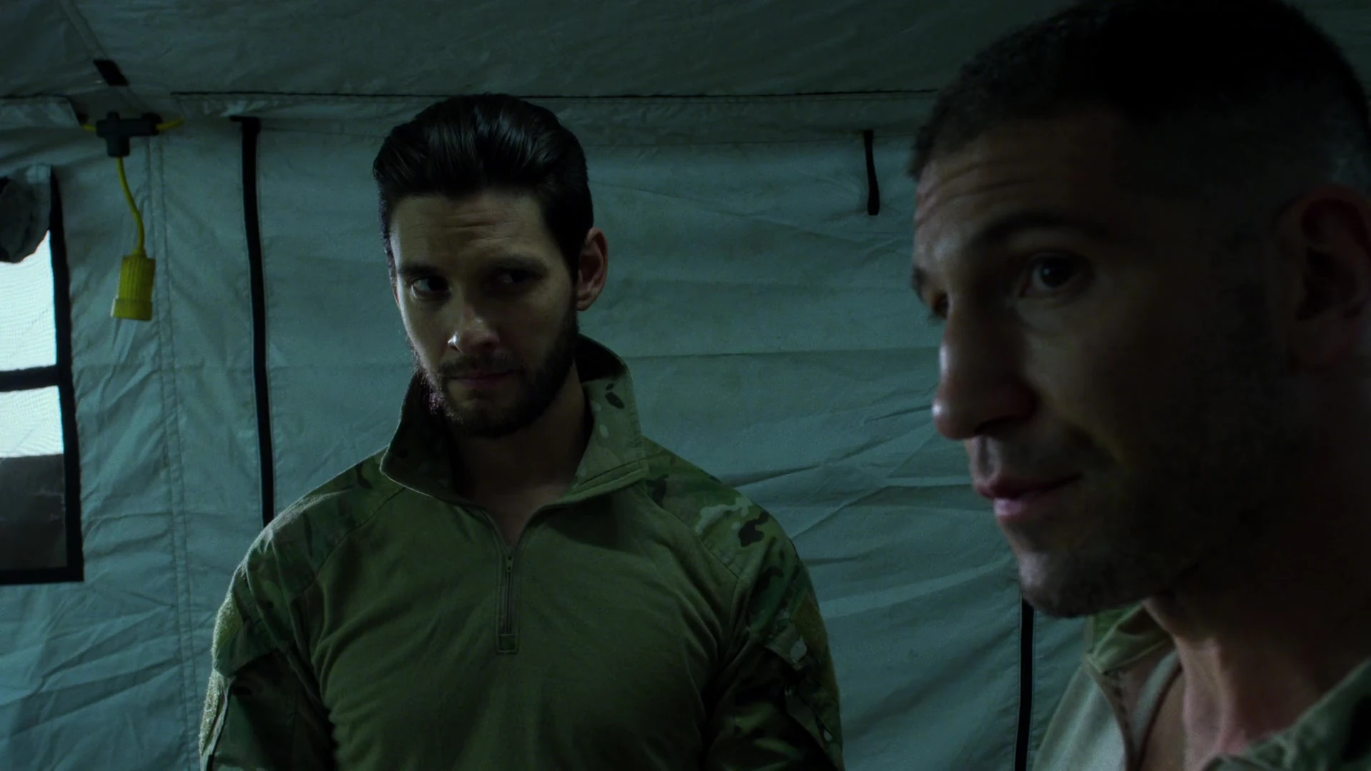 Russo questioned if Madani had come to Anvil for training or to ask him about his service record, which she confirmed. Once he insisted he would not be throwing his friends under the bus, Russo invited Madani to ask him the questions. Madani immediately asked Russo about Frank Castle and seemed surprised when Russo informed her that he and Castle had been close friends while serving together. Russo told the story of when he and Castle fought together in Basra, which he claimed to be the best night of his life, before expressing his regret that Castle had been killed, noting that he missed him.