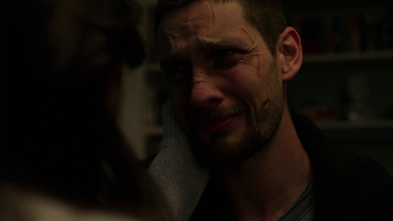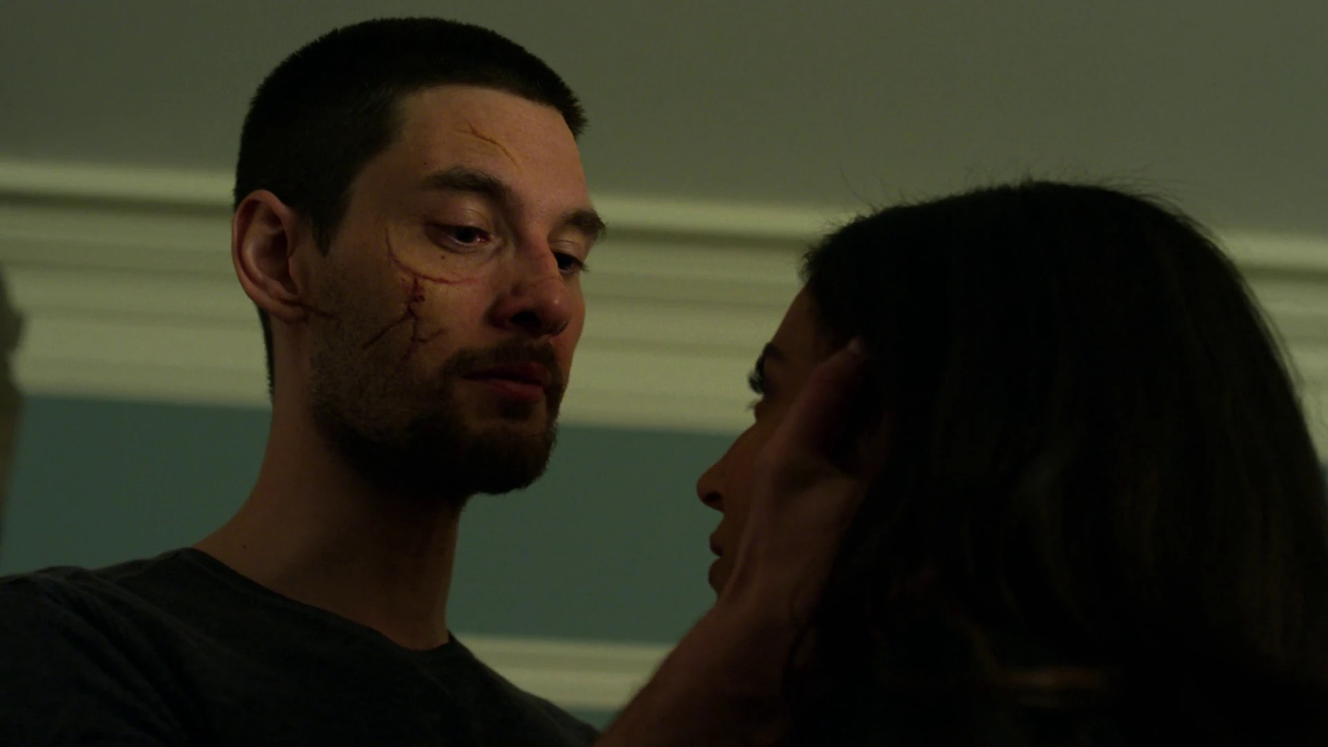 Although Russo noted that he hated his own nightmares because he had not been able to remember the truth, Dumont explained that she hated the fact that she did. Although Dumont had tried to dismiss the conversation, Russo noted that she knew everything about him from his military records to those police reports, he claimed that he did not actually know anything about her. Dumont claimed that she had told him the truth about his scars, although Russo insisted that she was missing out important details, noting that he might as well have told her about a painful shoulder while explaining his own facial scars.