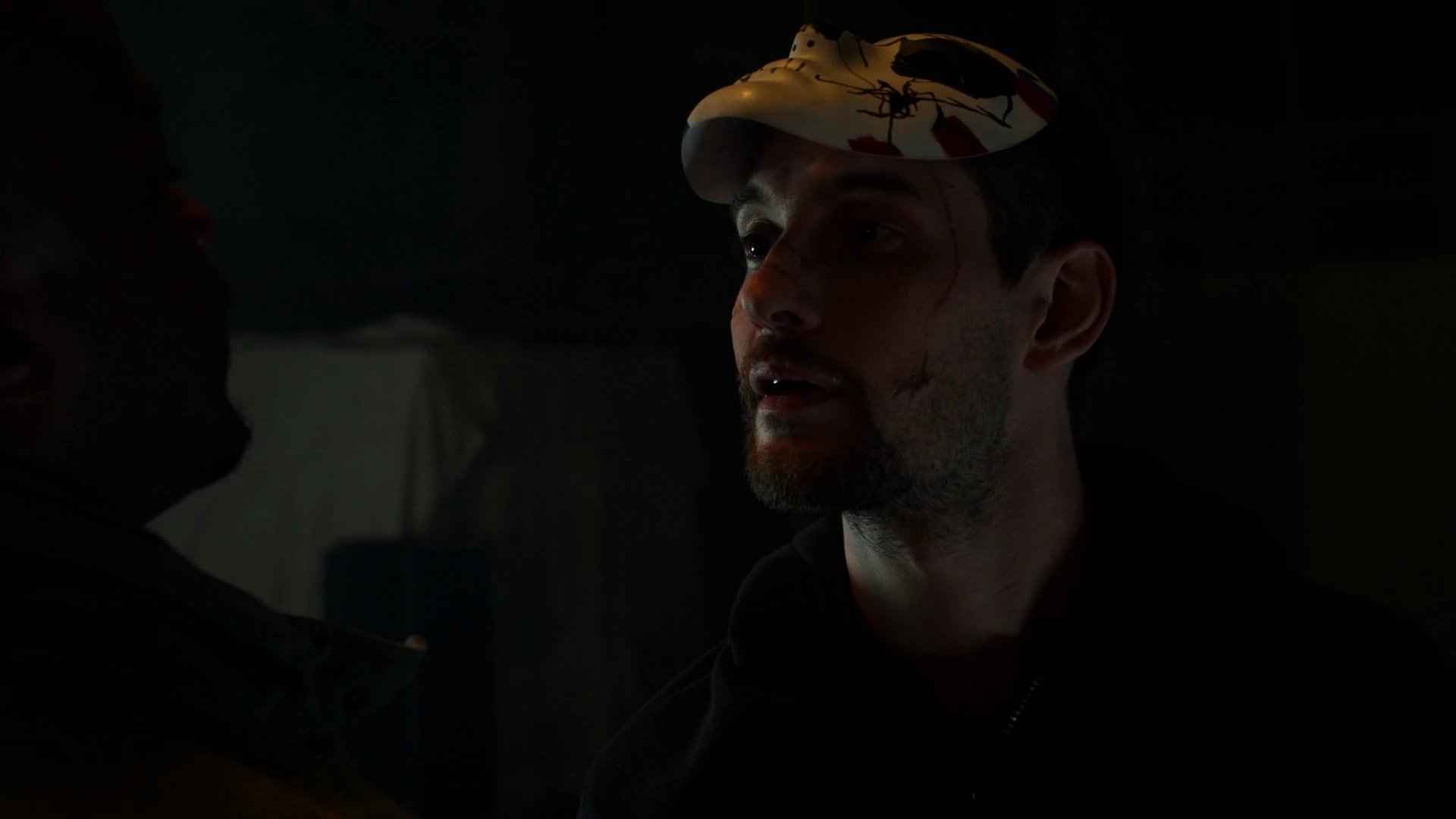 Entering his office, Russo spoke with Curtis Hoyle who had arrived to talk about the current mental state of Russo's possible new recruit for the team, Lewis Wilson, who had also been attending Hoyle's therapy sessions. Fearing that Wilson was not mentally stable, Hoyle recommended that Wilson not be selected for Anvil, noting that Wilson was living inside a hole he had dug within his back garden and had almost shot his own father by mistake due to his PTSD.