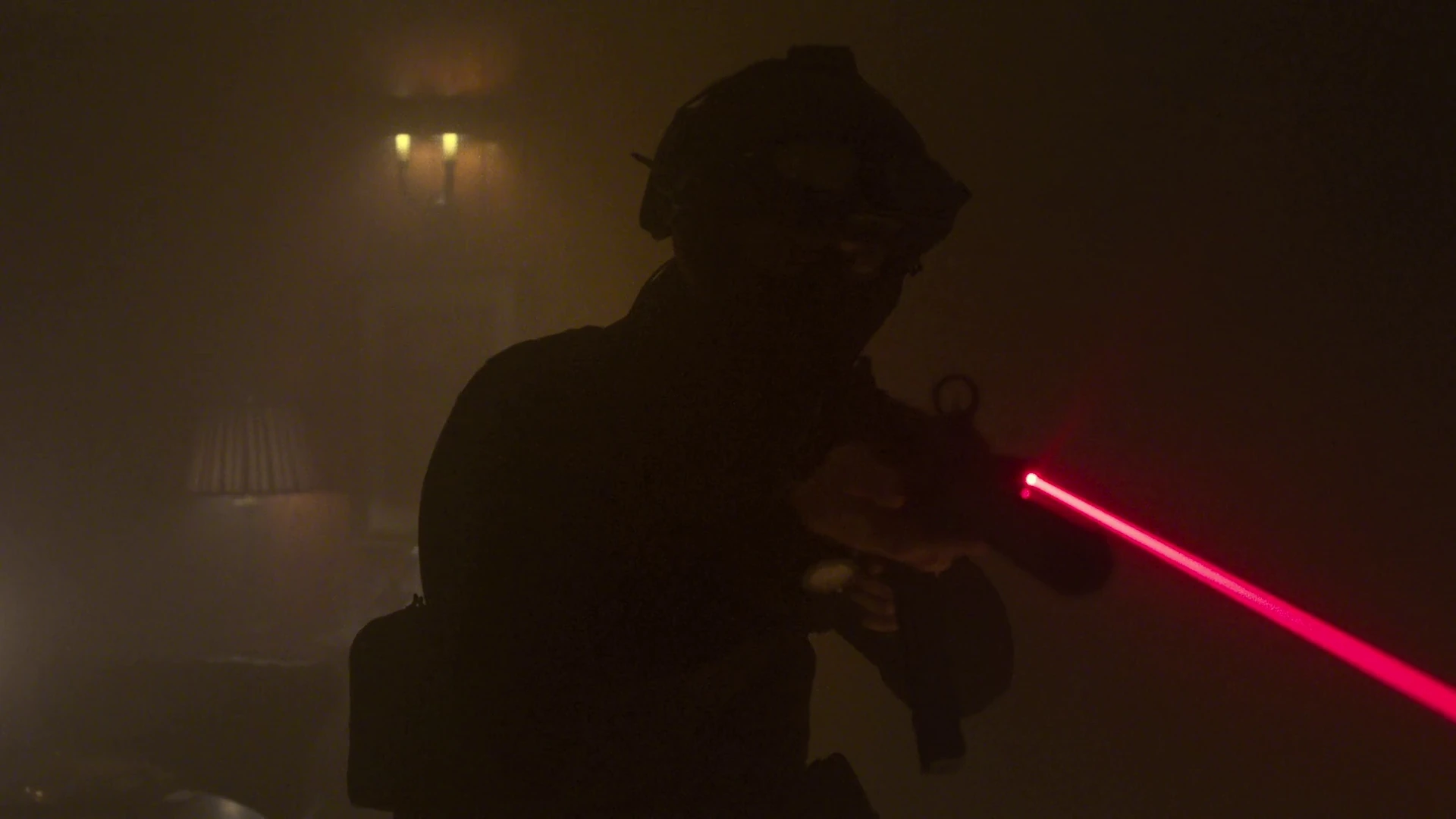 As it turned out however, Castle was ready for their sudden ambush as he had filled the entire room with smoke making it impossible for Russo and his team to clearly make out their target. Armed with laser sights on their rifles, Russo and his unit scanned the room for either Castle or Bennett, only to discover that Castle was using his training within the United States Armed Forces as well as the smoke to his own advantage to take out Russo's men one by one. Seeing through Castle's plan, Russo turned off his own laser pointer to try and find an advantage while the rest of his men were slowly taken out.