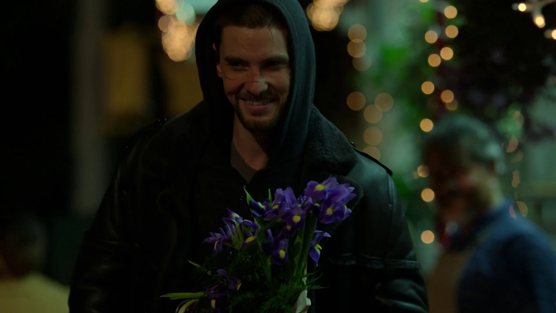 While on his way back to her apartment, Russo decided to stop on the way and buy some flowers for Krista Dumont. As he looked at all of the flowers, Russo was greeted by the owner who asked what he was looking for, as Russo asked for something blue, thinking back to the therapy sessions he went through with Dumont at Sacred Saints Hospital, as the shop owner sold them to Russo and referred to him as Mr. Blue.