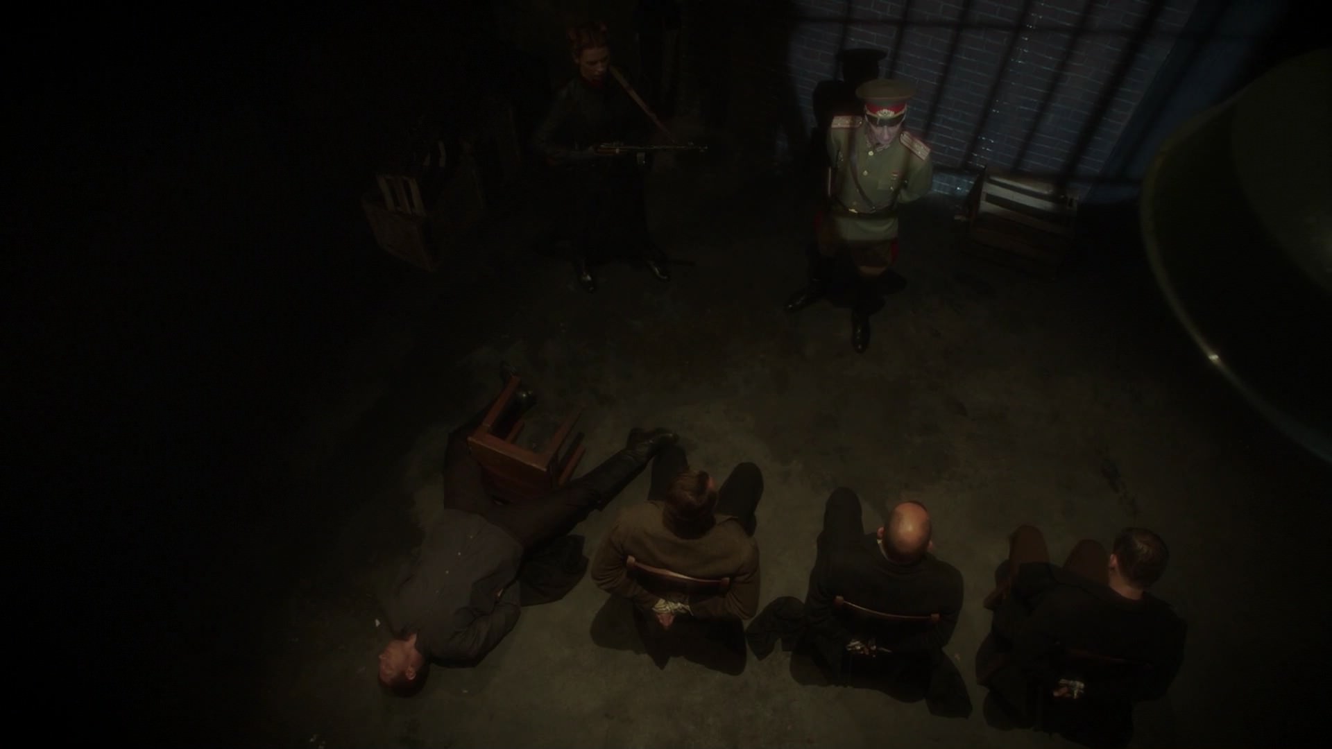 While Fennhoff explained how Leviathan had built their biological and mechanical weapons, Peggy Carter questioned if they were making human weapons, such as Eva who they had encountered at the Red Room Academy, although Fennhoff denied any knowledge of this. As Carter noted how the Academy seemed to be training young women as assassins, Fennhoff had noted how women were often overlooked in society. While Carter had continued asking if these women could have been sent to the United States of America, Fennhoff still denied any knowledge before Dooley had removed Carter from the room.