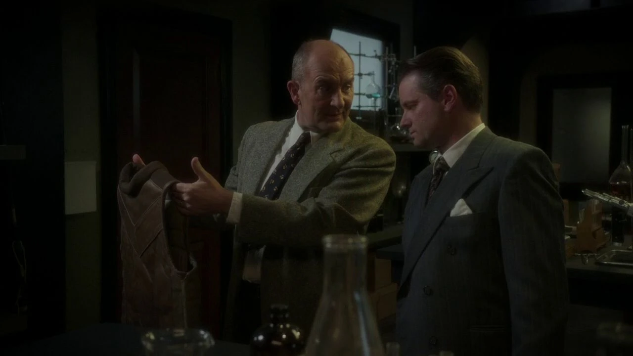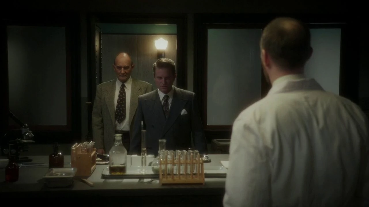 Having gained full control over Dooley, Fennhoff then instructed him to move Carter and Jarvis into the interrogation room, handcuff them to the table and lock them inside. Following this, Fennhoff then had Dooley bring him inside Alex Doobin's laboratory, claiming that there had been a leak within Doobin's department, noting how Carter had taken the Blitzkrieg Button. Once Dooley had ordered Doobin and his entire team to leave the laboratory, Fennhoff had then complimented him on his commanding presence, before then noting that he wanted to find one of Howard Stark's inventions somewhere in the room.