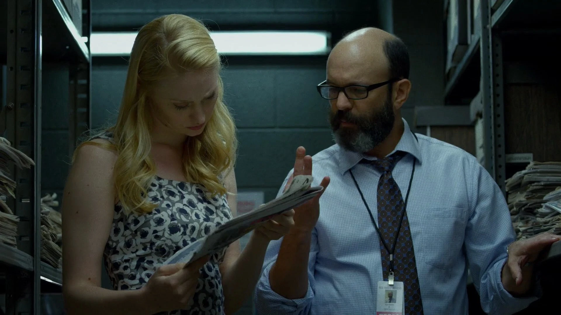 By 2015, Page worked as the secretary to the chief accountant of Union Allied Construction. One day, she was emailed a file meant for her boss, which contained damning evidence of Union Allied's money laundering schemes. Seeking to tell someone about what she had discovered, Page initially went to McClintock, but he claimed the file was for a company finance model. Not trusting this story, she copied the file on a drive and asked Daniel Fisher, one of her co-workers from the legal department, to join her for drinks at a nearby bar, believing him to be an overall good and nice man whom she could trust.