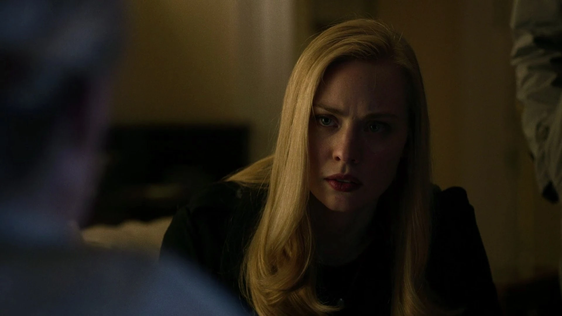 Page led Urich into the room of Marlene Vistain, the woman she had come to see. Although Vistain was clearly confused by her new visitors, Page and Urich convinced her to discuss the hospice which pleased her as she asked if they were married. Page asked if Vistain had been married before and she explain her late husband had been her third, telling them of each husband. Vistain told them of her first husband who drank; she told them that her son's name was Wilson Fisk which peaked Urich's interest. Vistain went on to explain that the young Fisk had murdered his father in cold blood to protect his mother.[17]
