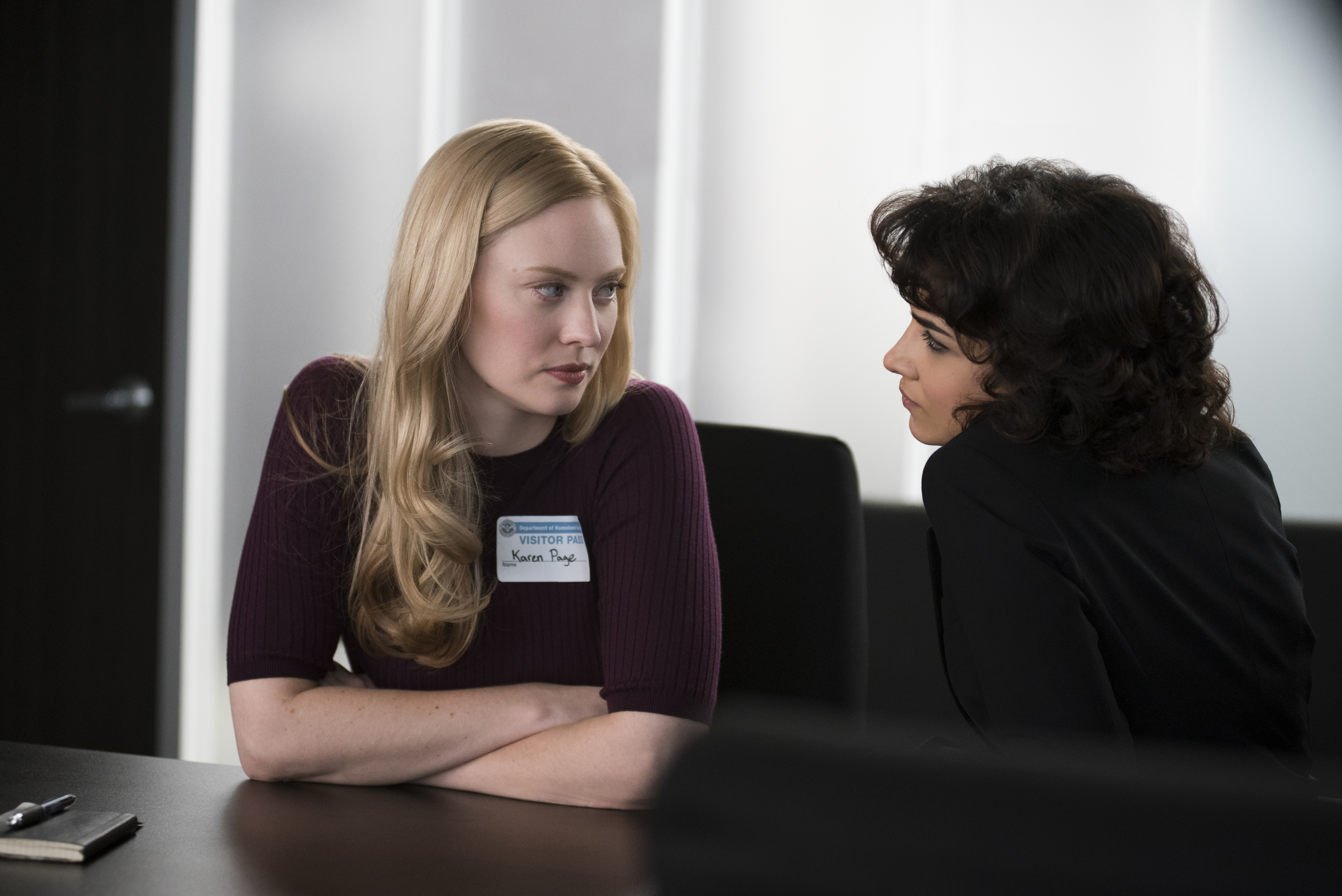 Page was taken to the FBI along with her lawyer, Foggy Nelson. Special Agent Ray Nadeem showed them a recording that was captured at the attack. Specifically the part where "Daredevil" told Page that it was nice to see her again. Nadeem thought that "Daredevil" knew her, but Page claimed he did not. Nadeem brought up the articles that Page wrote saying she met him at least twice. Page told him that she met the real Daredevil, not this one. Nadeem claimed to look him in the face and saw it was Daredevil.