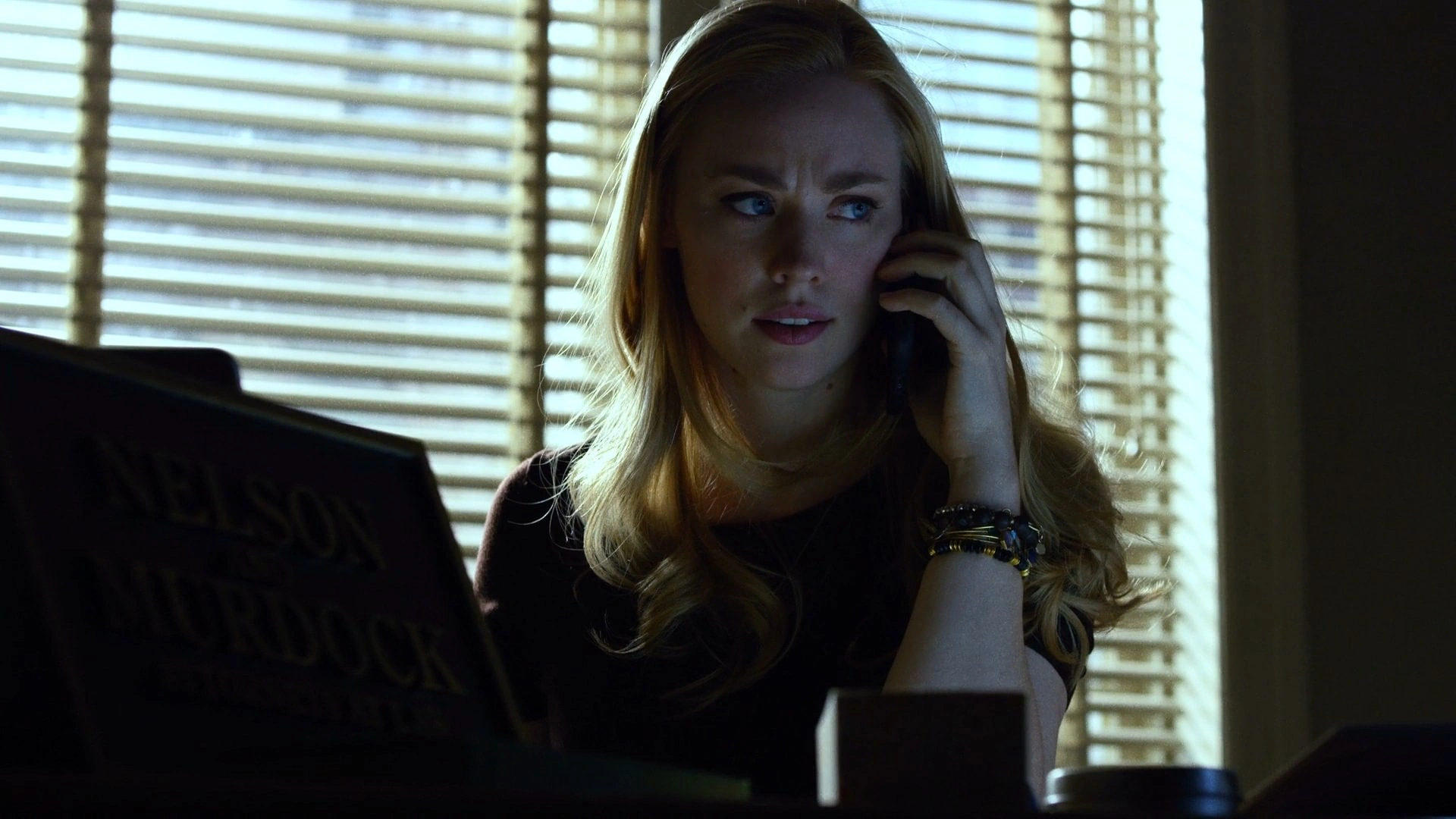While waiting at the Nelson and Murdock Law Office, Page received a call from Ben Urich who told her his editor Mitchell Ellison was busy attending his kid's show at school so he had been unable to show him the story yet. They were interrupted when Matt Murdock called and informed her that he had had a rough morning and needed to take the day off so he could work on something at home. He asked Page to pass on the message to Foggy Nelson as well before promising her that everything would work out fine in the end.