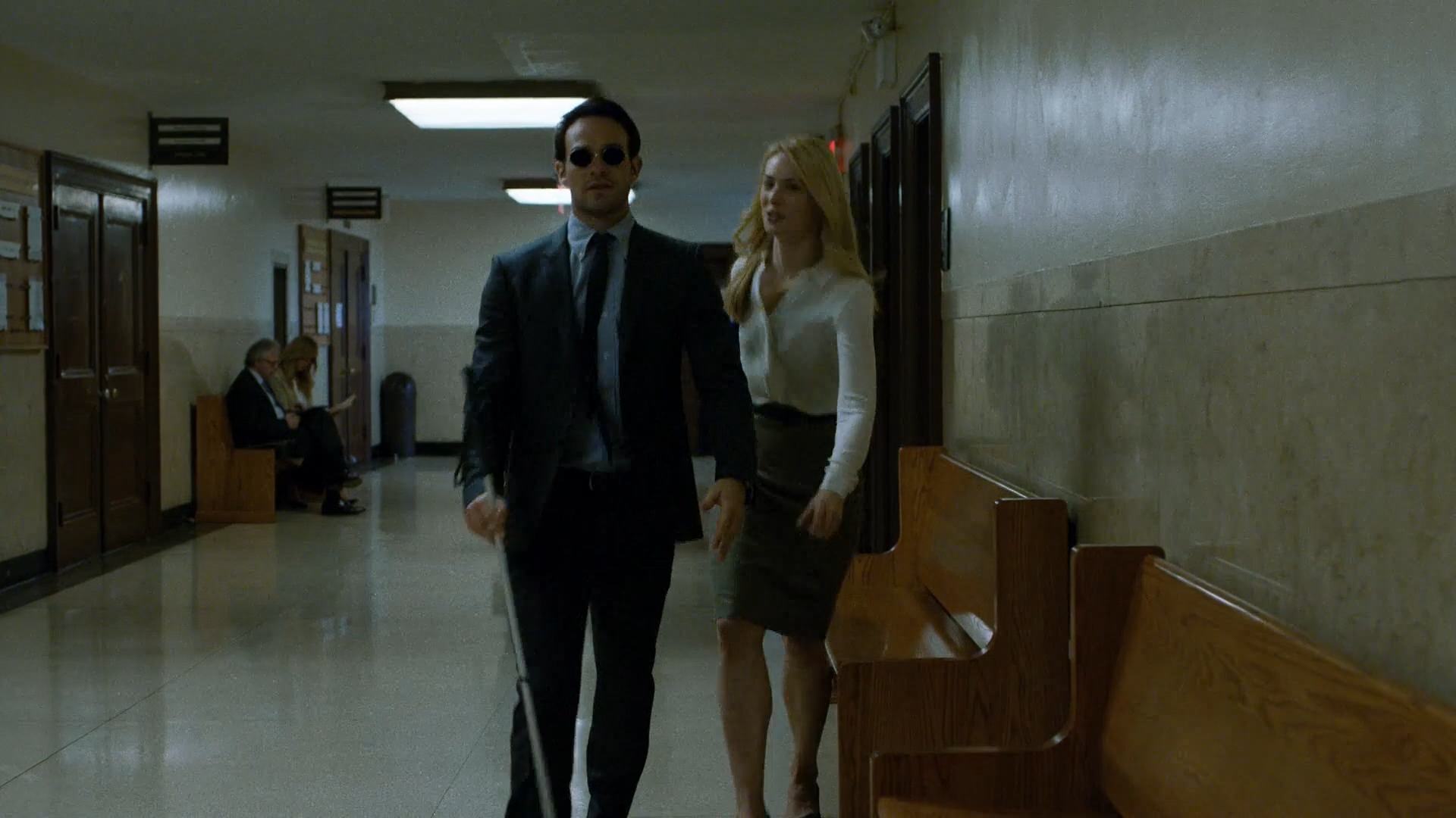 Murdock and Page then left the courtroom and sat on a bench together, where Page told him that San Francisco was nice. Murdock asked her if they could have a conversation over coffee but Page declined. Murdock reminded her that his senses allowed him to tell that she was lying, although he was unsure whether she was lying to him or to herself. Murdock demanded to know what he needed to do to be able to speak with her, adding that he had called her and left messages, and Page reminded Murdock that he was the one who did not talk to her for weeks when Nelson died. Murdock replied that it took him a while to process Nelson's death, but as the conversation became heated, Page stated that she did not want to argue and that she had only returned for the sentencing hearing because of Nelson. She then told Murdock that was happy that he seemed to be doing well and apologized for not having called.