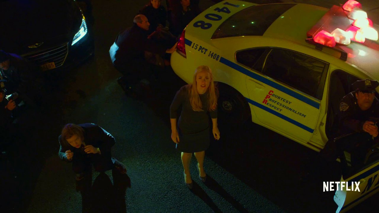 Fisk asked how it was around the New York Bulletin, so Page asked how he felt about the murder of his father, as she knew he did it. Fisk started getting mad and uneasy. Fisk revealed why he let her in. He had a few questions of his own. He brought up Matt Murdock and when Page's eyes perked up, he knew Murdock was Daredevil. He used this against her. Page then revealed that was the one who had murderedJames Wesley. She taunted him about losing his best friend as Fisk tried to hold back his rage. As Fisk stood up, the FBI came in, but instead of arresting Fisk, they arrested Page. She looked up to find Nelson in the room. He revealed that he told them she wanted to kill him so that she would not get injured. Her and Nelson argued as they walked out and she revealed she wanted Fisk to lash out emotionally. Nelson worried it will only get worse from there.[47]