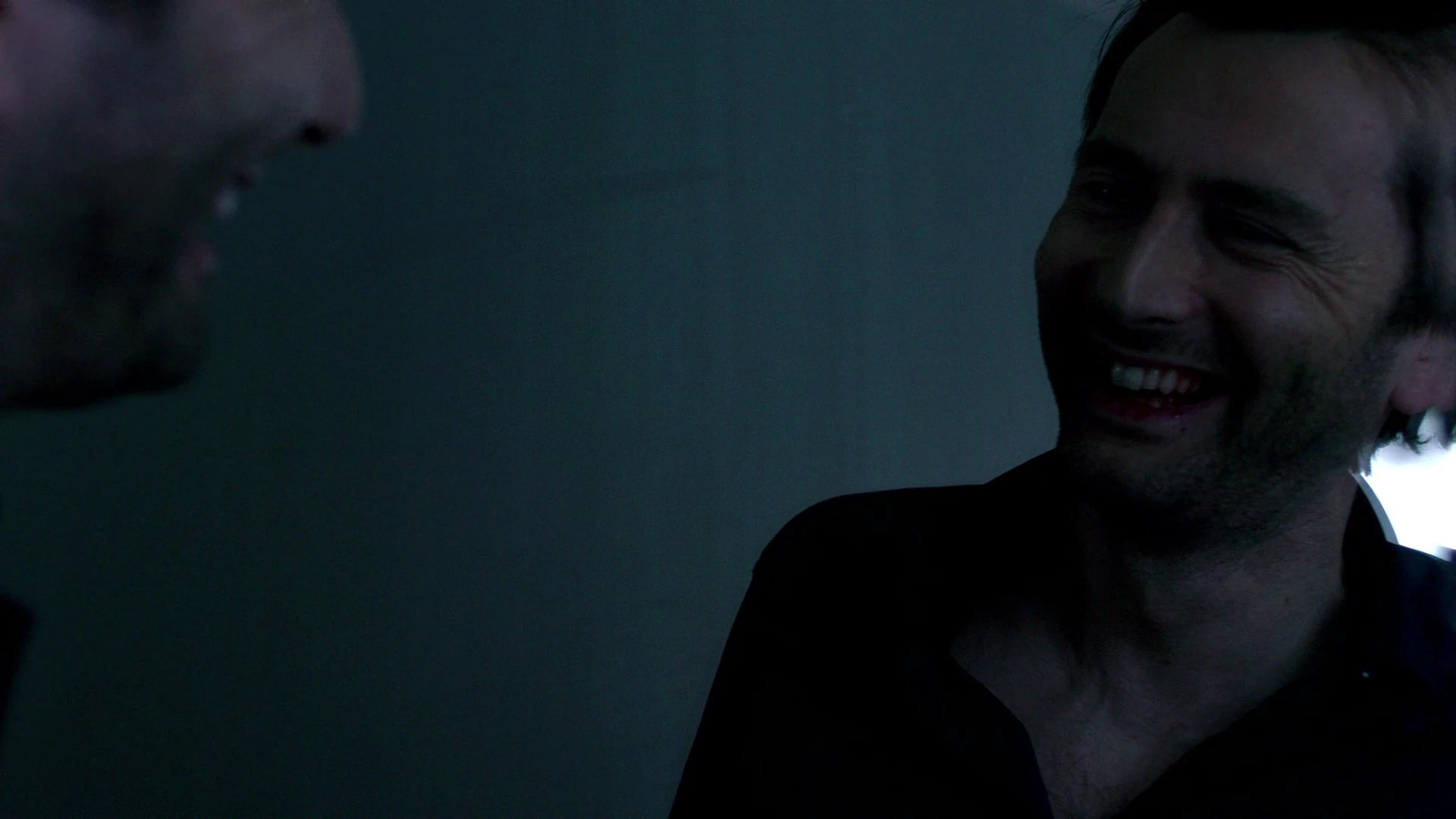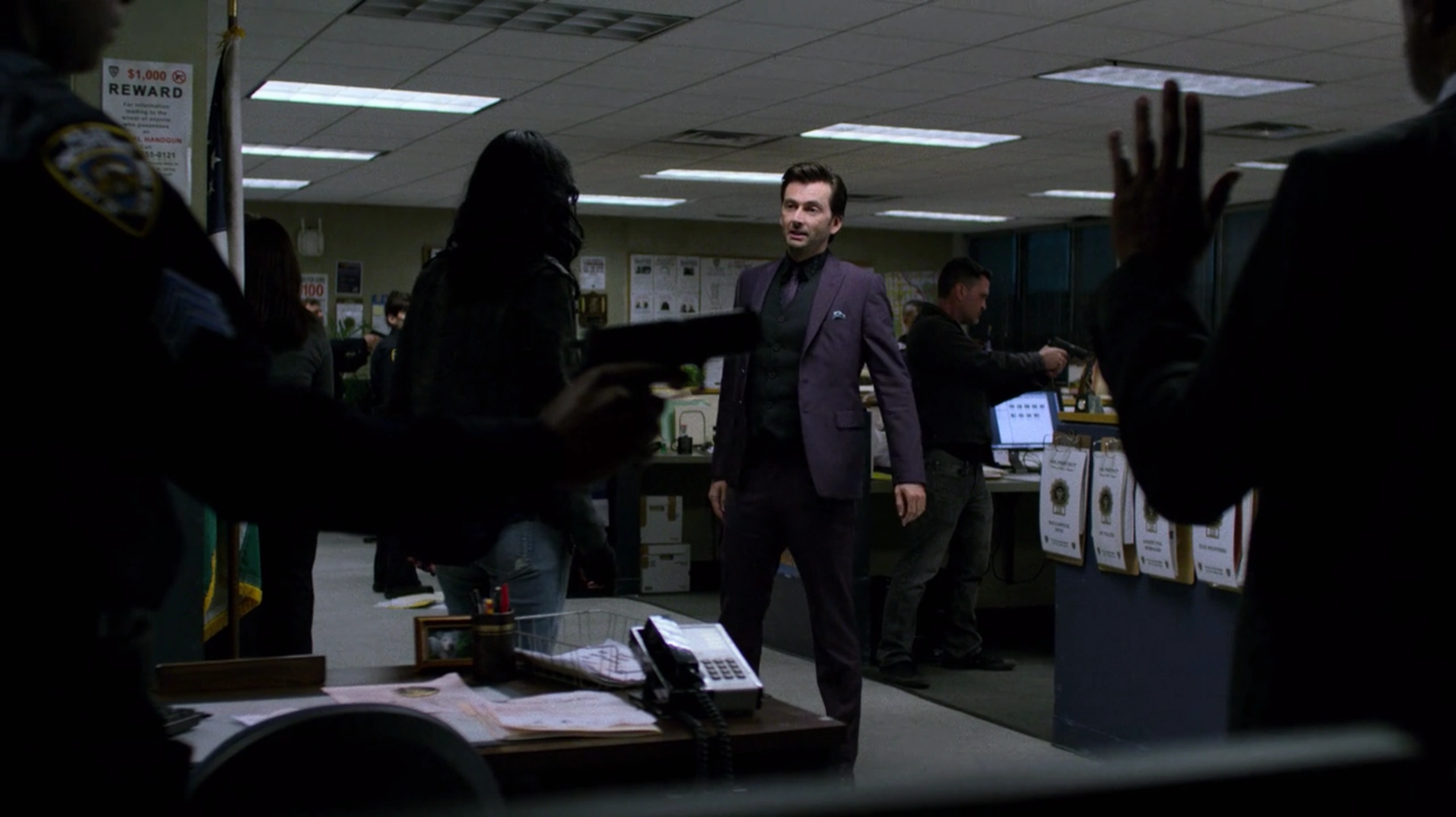 Kilgrave then ordered Brett Mahoney to bring Jones out to him from questioning; once Jones appeared, Kilgrave revealed himself and admitted to keeping spies on her at all times. Jones begged him to let the people go but he refused, stating he had no intention of controlling her mind ever again. When Jones questioned if he was torturing her to drive her to suicide, Kilgrave revealed his true love for her. They were interrupted when Oscar Clemons' phone began to ring; so Kilgrave furiously destroyed it and promised to force the next person to eat their phone, insisted it ruined his declaration of love.
