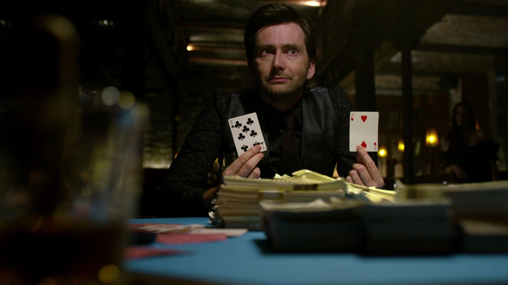 Enjoying his time in New York City, Kilgrave attended a poker game with a group of gangsters. When Harvey attempted to light a cigar, Kilgrave threatened to force him to put it out on his eyeball. Having gotten a terrible hand, Kilgrave decided to go all in with his cash and ordered the other men to do the same, mocking their nervousness and putting the money available to win at a million dollars. Kilgrave then ordered the men to fold and took the money for himself, revealing his terrible hand and mocking the group.