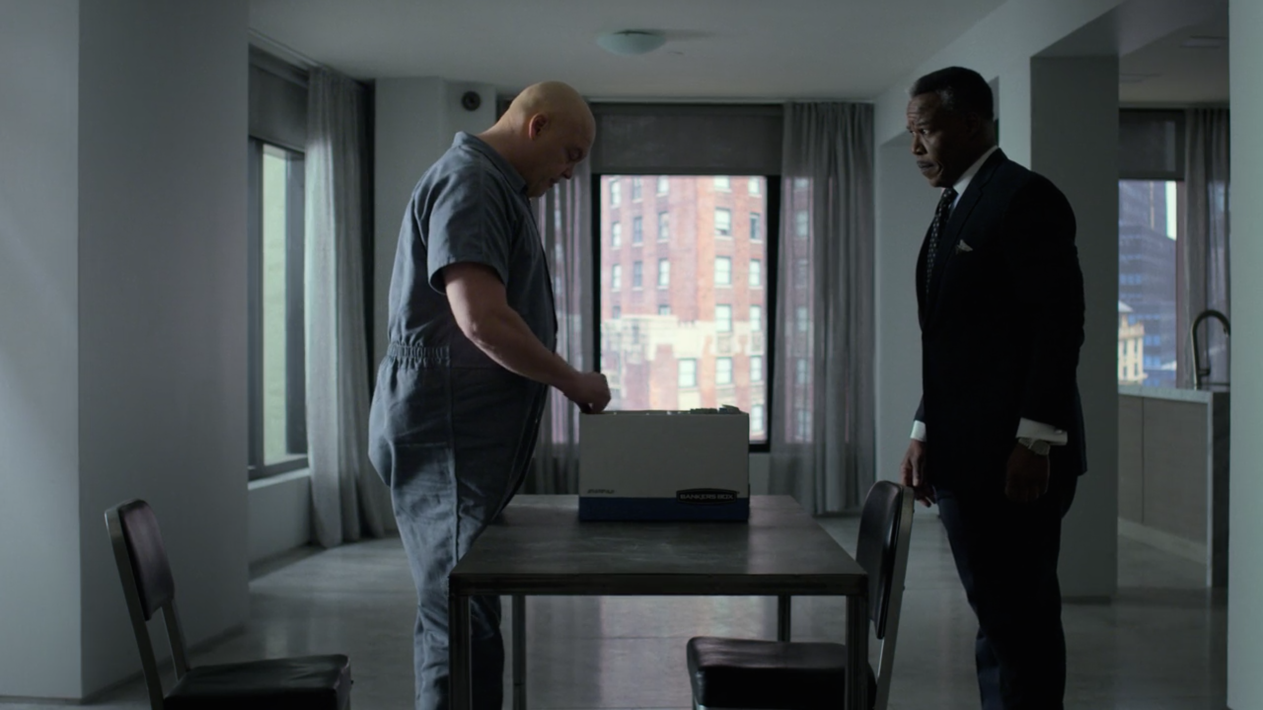 As Sheila Rivera ran through the day's agenda, Fisk expressed his exhaustion with attending so many black tie events. In his office, Fisk found Luca waiting for him, so he gave him five minutes to state his business before leaving. Fisk told Luca that he needed to pay Viktor what he owed, but Luca disrespectfully refused. Fisk doubled the amount, but Luca remained unfazed, telling Fisk to stay out of the crime world before leaving.[59]