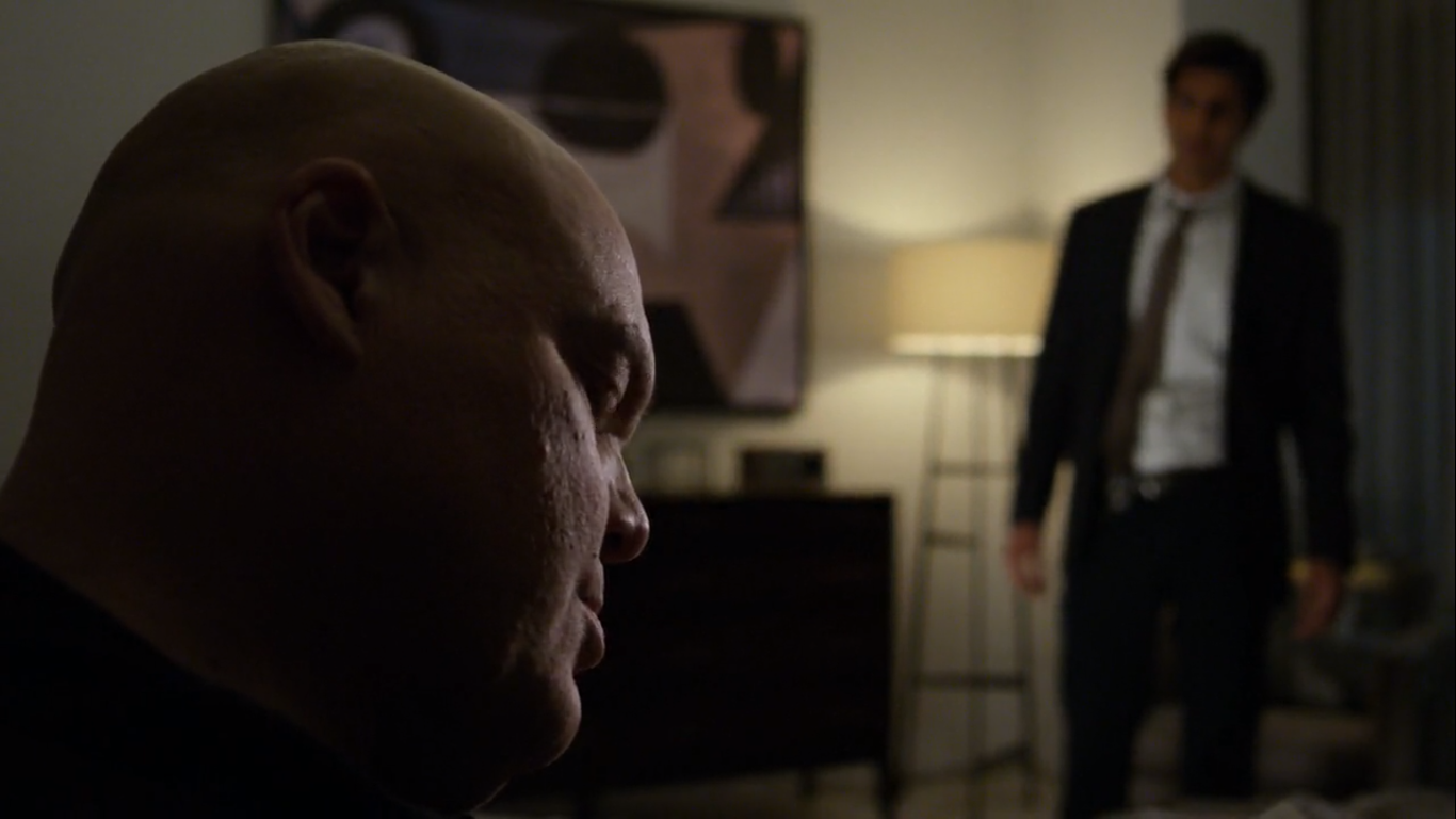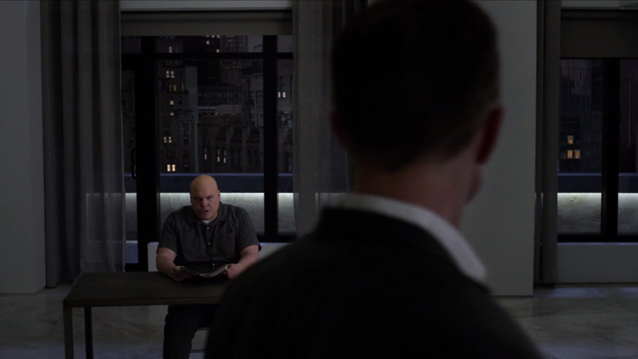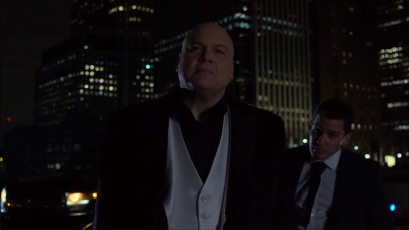 While inside his penthouse, Fisk spoke to Vanessa Marianna about her life as well as his life living in Asia when he was interrupted by a call from James Wesley. Apologizing to Marianna, Fisk answered Wesley who explained that Christian Blake had just awoken in the hospital after Fisk's ESU Sniper shot him. Fisk suggested they use Carl Hoffman to assassinate him as they agreed that Blake would seek revenge, therefore Fisk knew he had to kill Blake before he exposed his entire operation.
