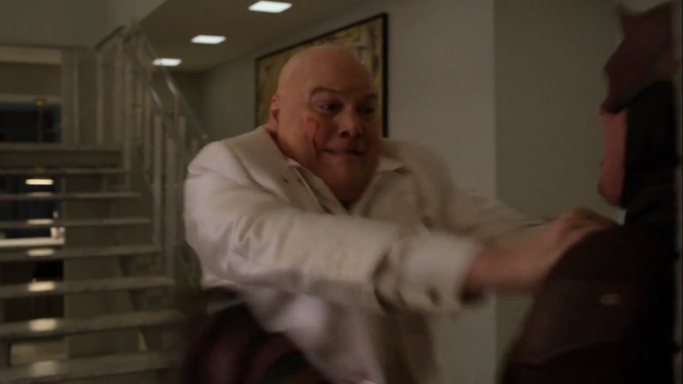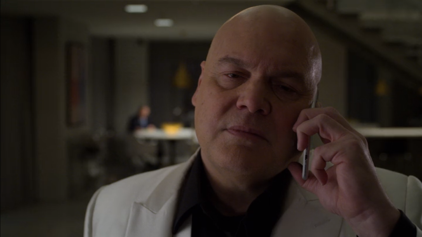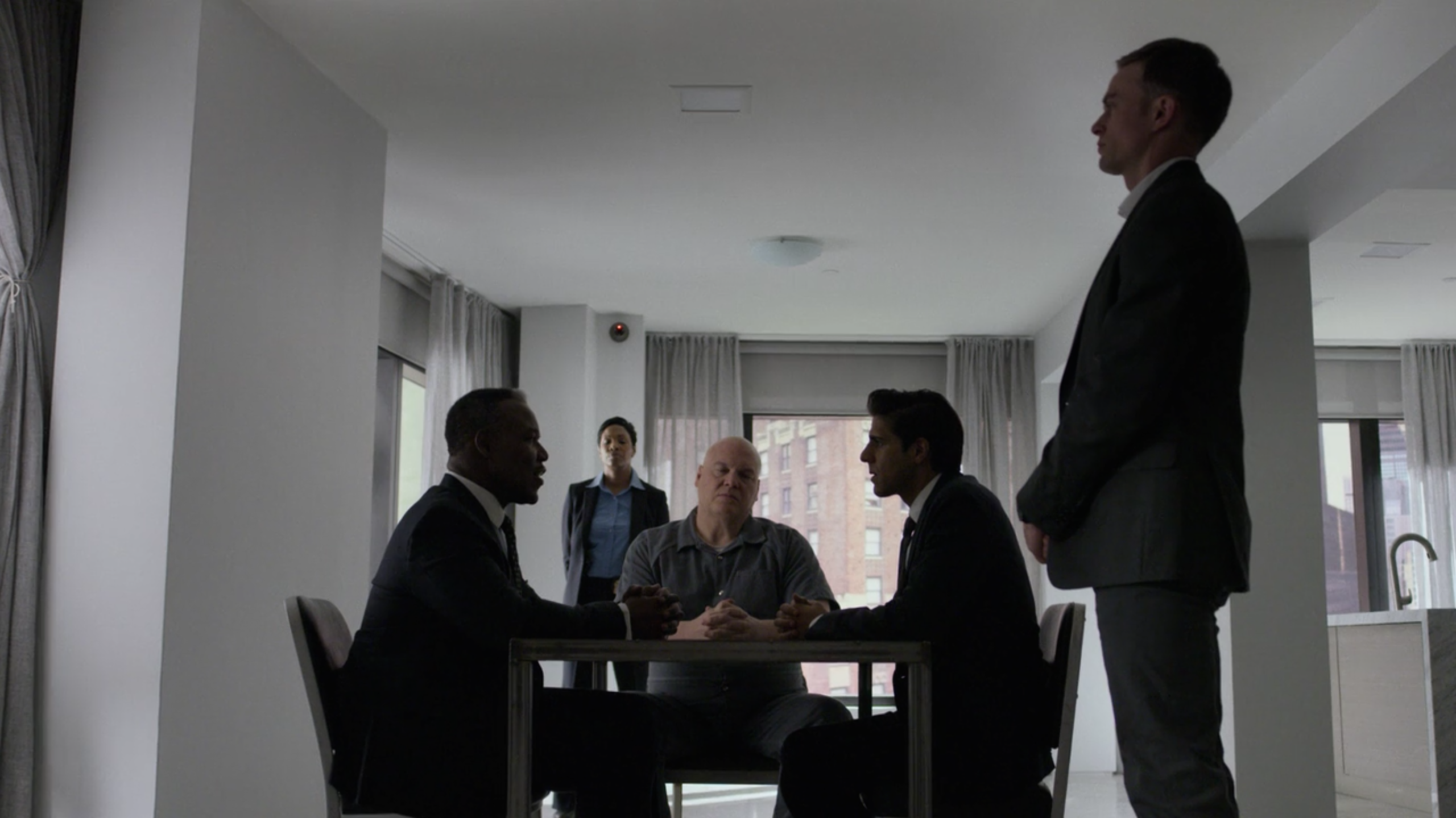 While inside his penthouse, Fisk spoke to Vanessa Marianna about her life as well as his life living in Asia when he was interrupted by a call from James Wesley. Apologizing to Marianna, Fisk answered Wesley who explained that Christian Blake had just awoken in the hospital after Fisk's ESU Sniper shot him. Fisk suggested they use Carl Hoffman to assassinate him as they agreed that Blake would seek revenge, therefore Fisk knew he had to kill Blake before he exposed his entire operation.