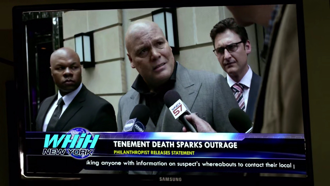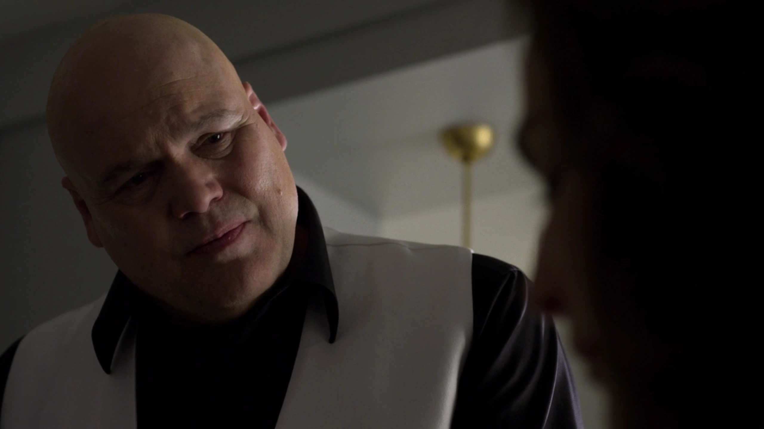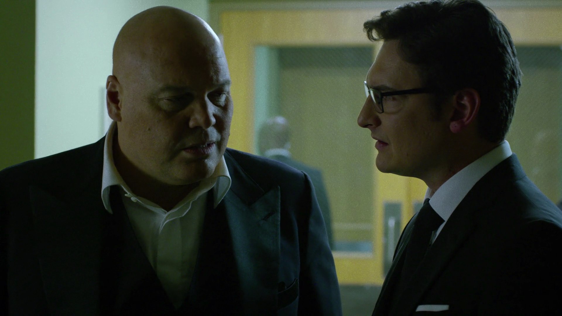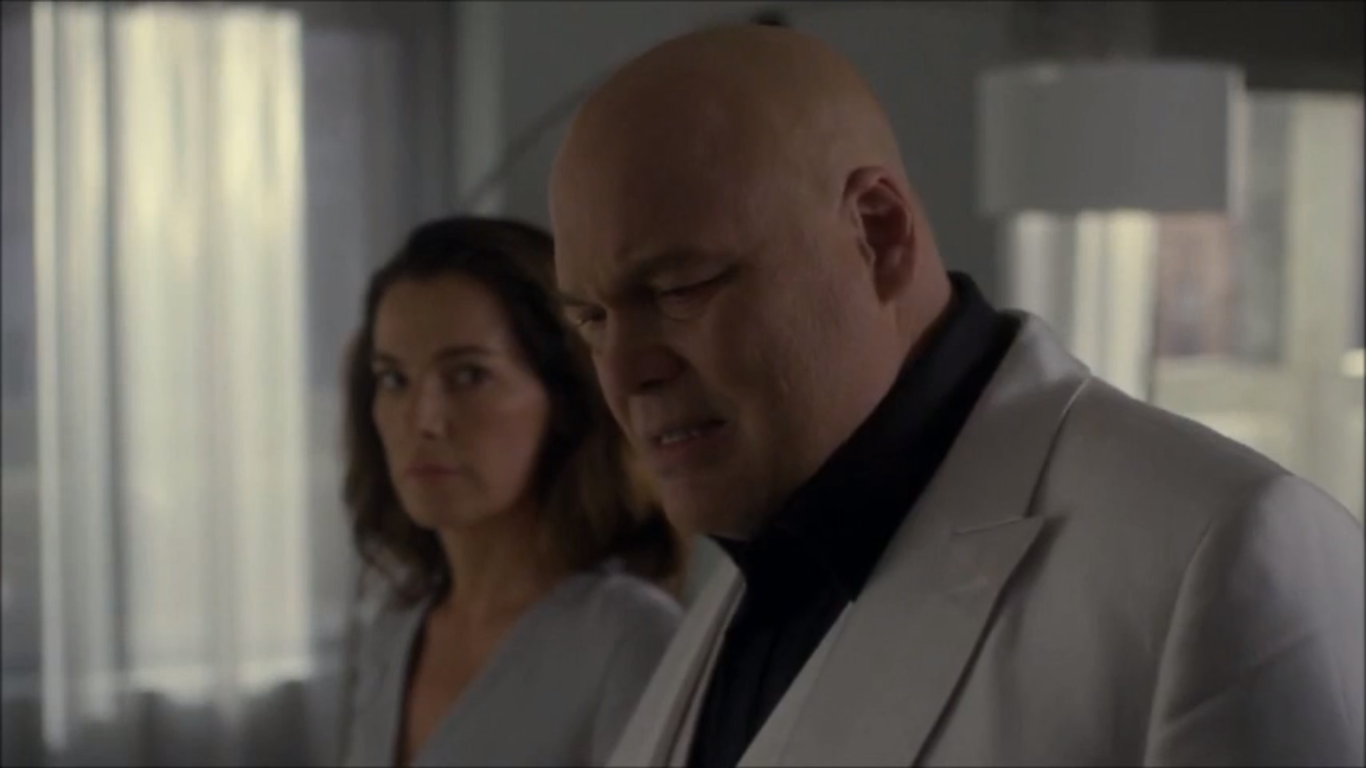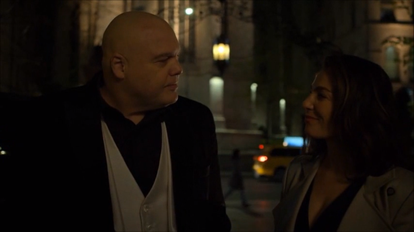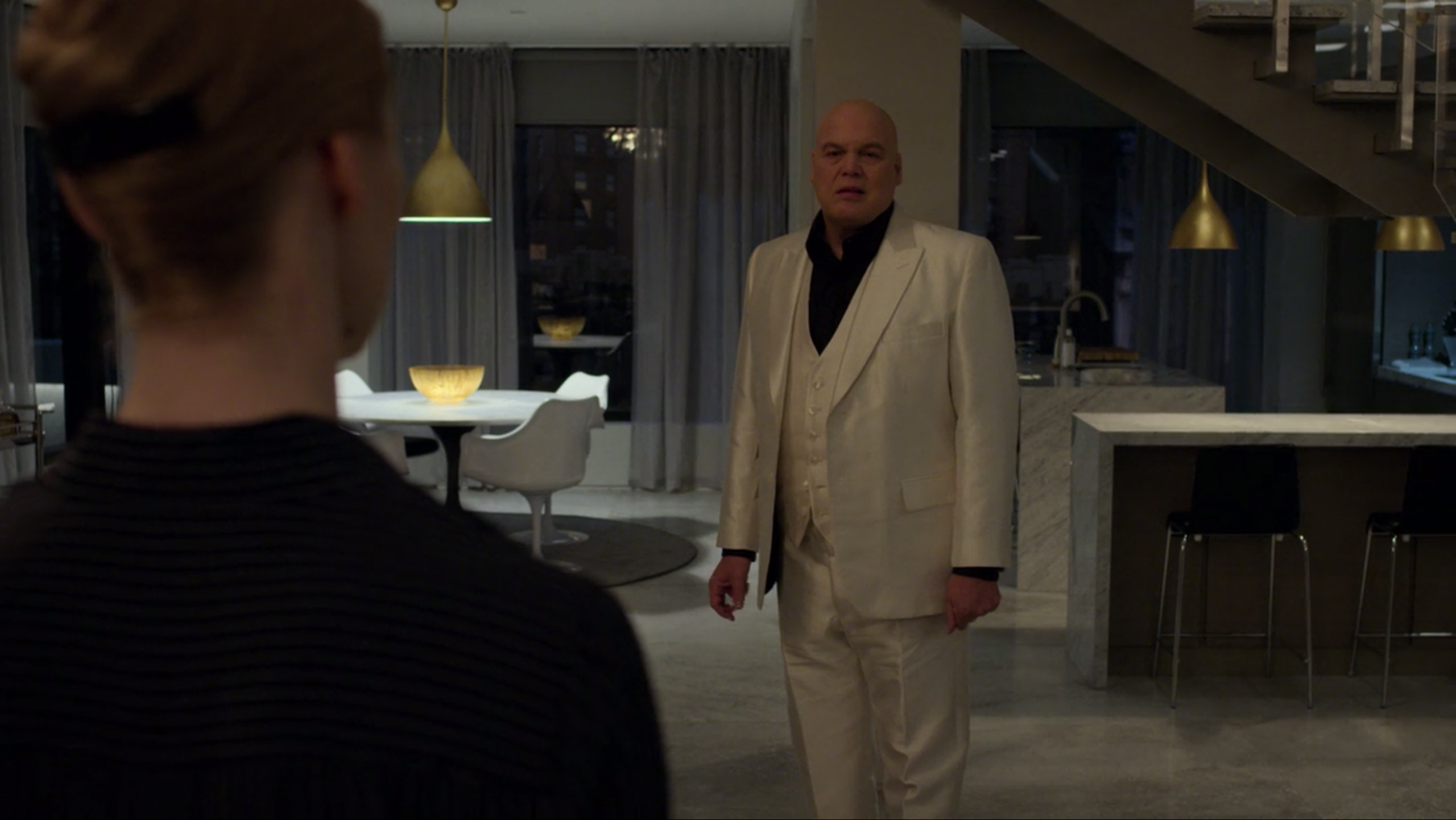 Despite them all sharing the laugh together, Murdock, however, then reminded Fisk that they should not be seen to be talking together as they were both currently on opposing sides of a law case. Fisk then explained to Marianna about how he had just recently bought all of the apartment properties from Armand Tully which was where Elena Cardenas was living, before he had then began to explain his plans on improving New York City but Marianna stopped him, noting that Murdock was a customer of the gallery who was just looking to buy some artworks and was not a donor for his political campaign.