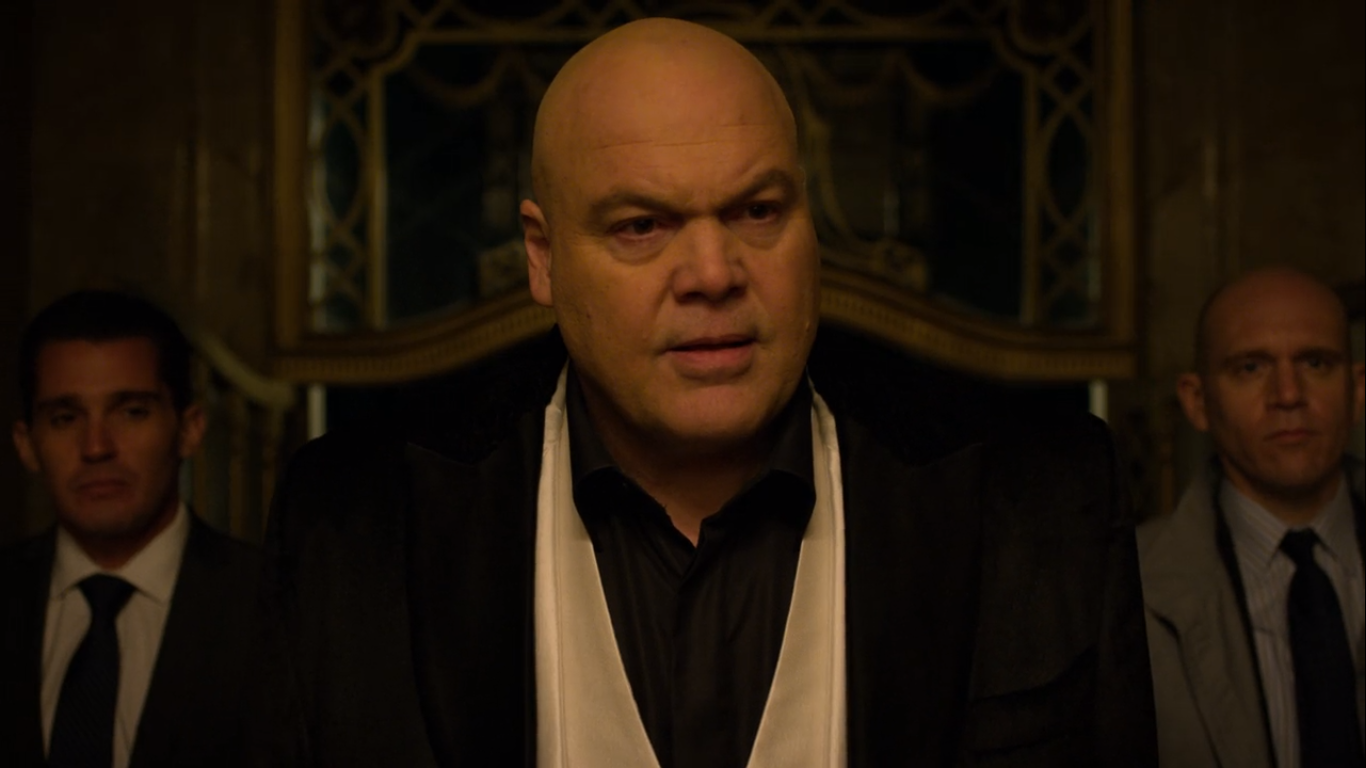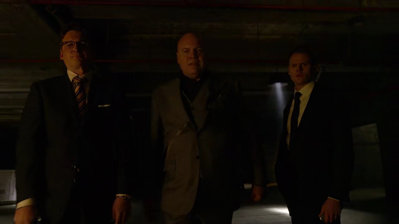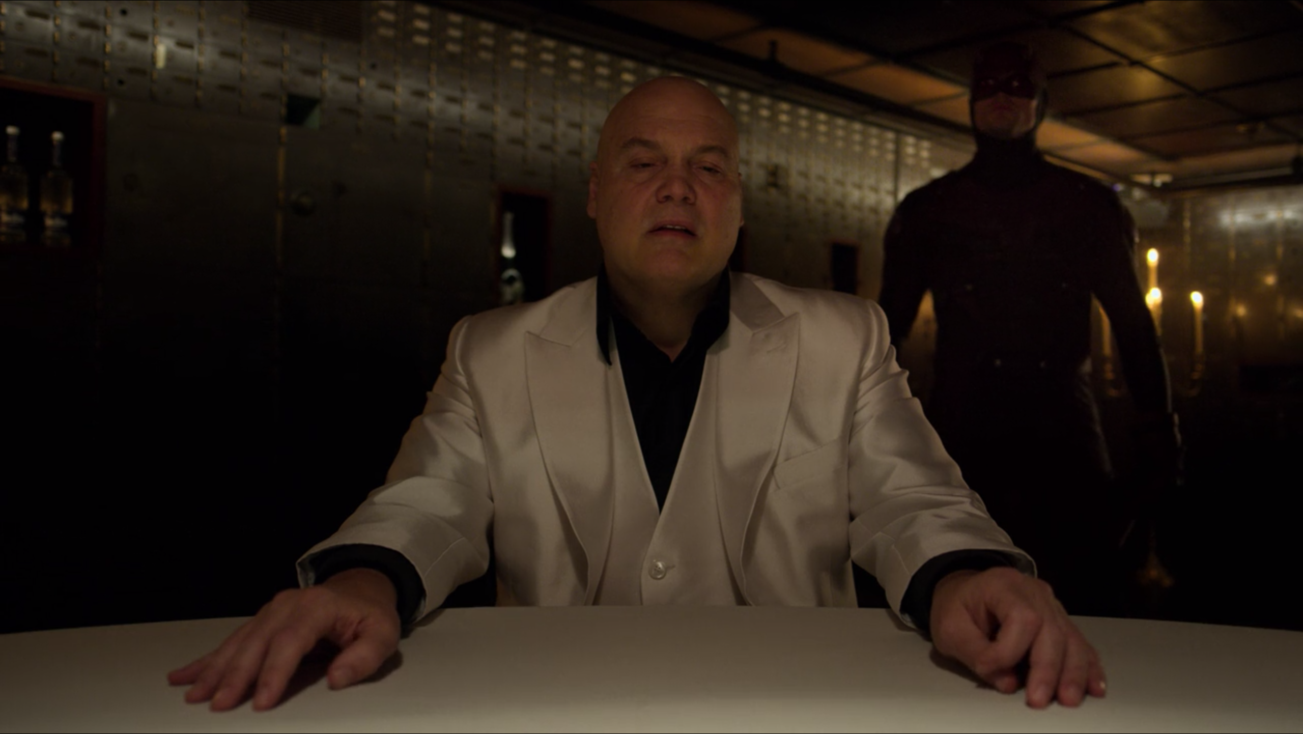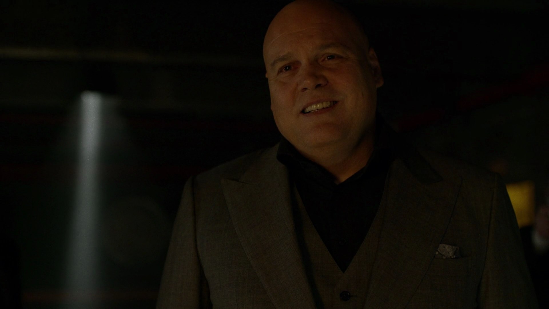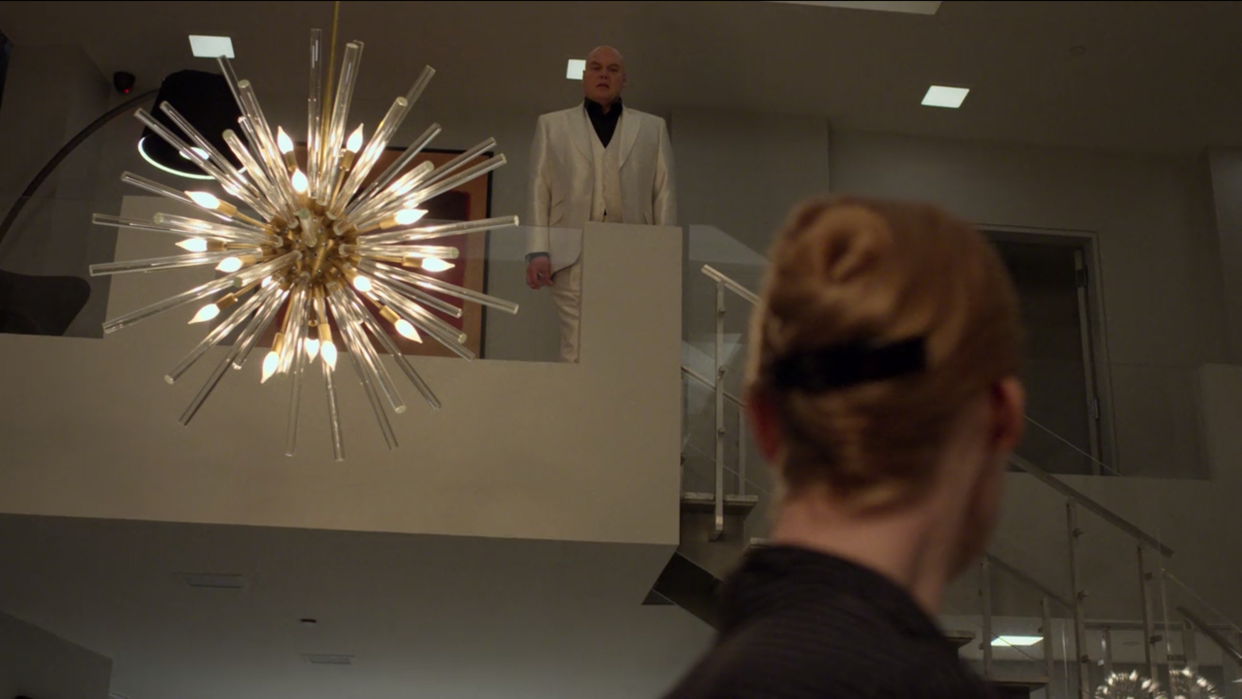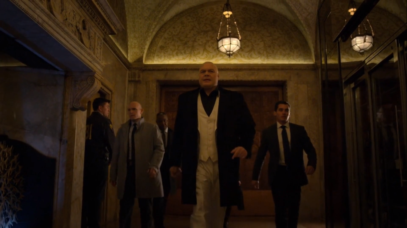 Despite them all sharing the laugh together, Murdock, however, then reminded Fisk that they should not be seen to be talking together as they were both currently on opposing sides of a law case. Fisk then explained to Marianna about how he had just recently bought all of the apartment properties from Armand Tully which was where Elena Cardenas was living, before he had then began to explain his plans on improving New York City but Marianna stopped him, noting that Murdock was a customer of the gallery who was just looking to buy some artworks and was not a donor for his political campaign.