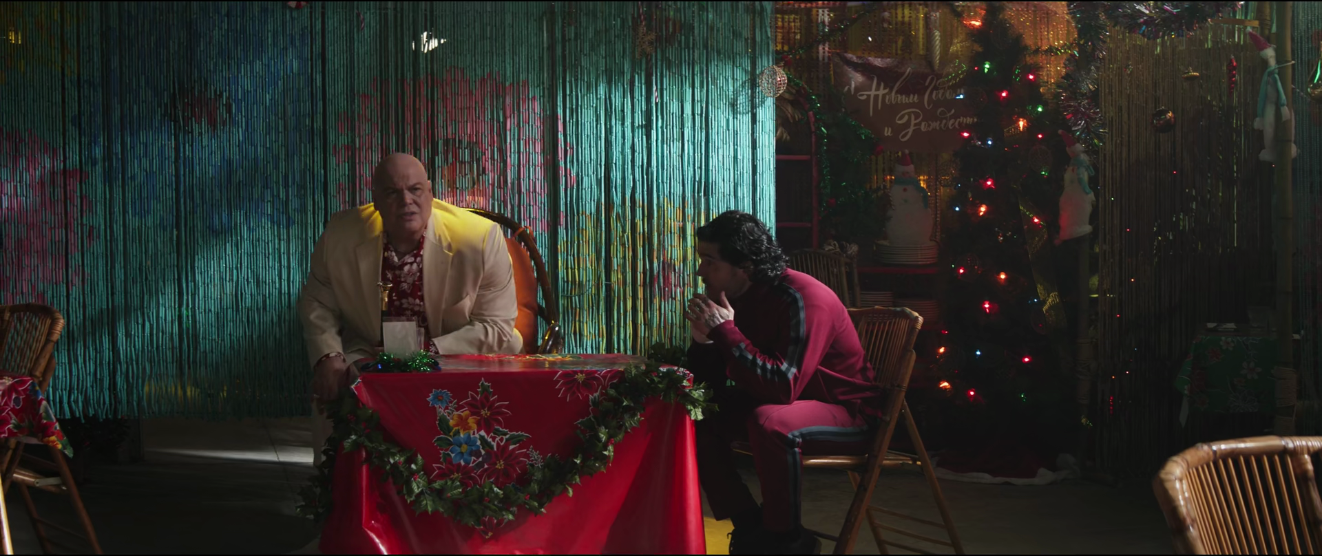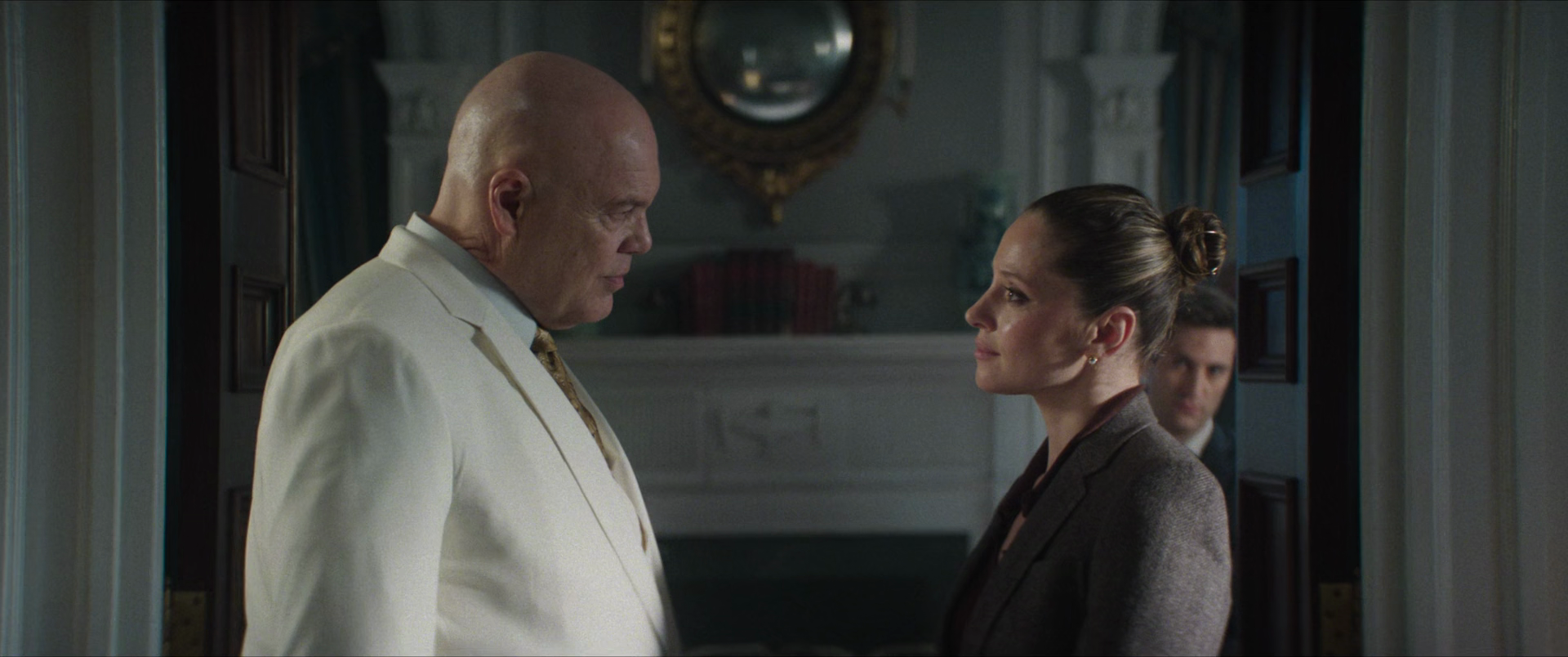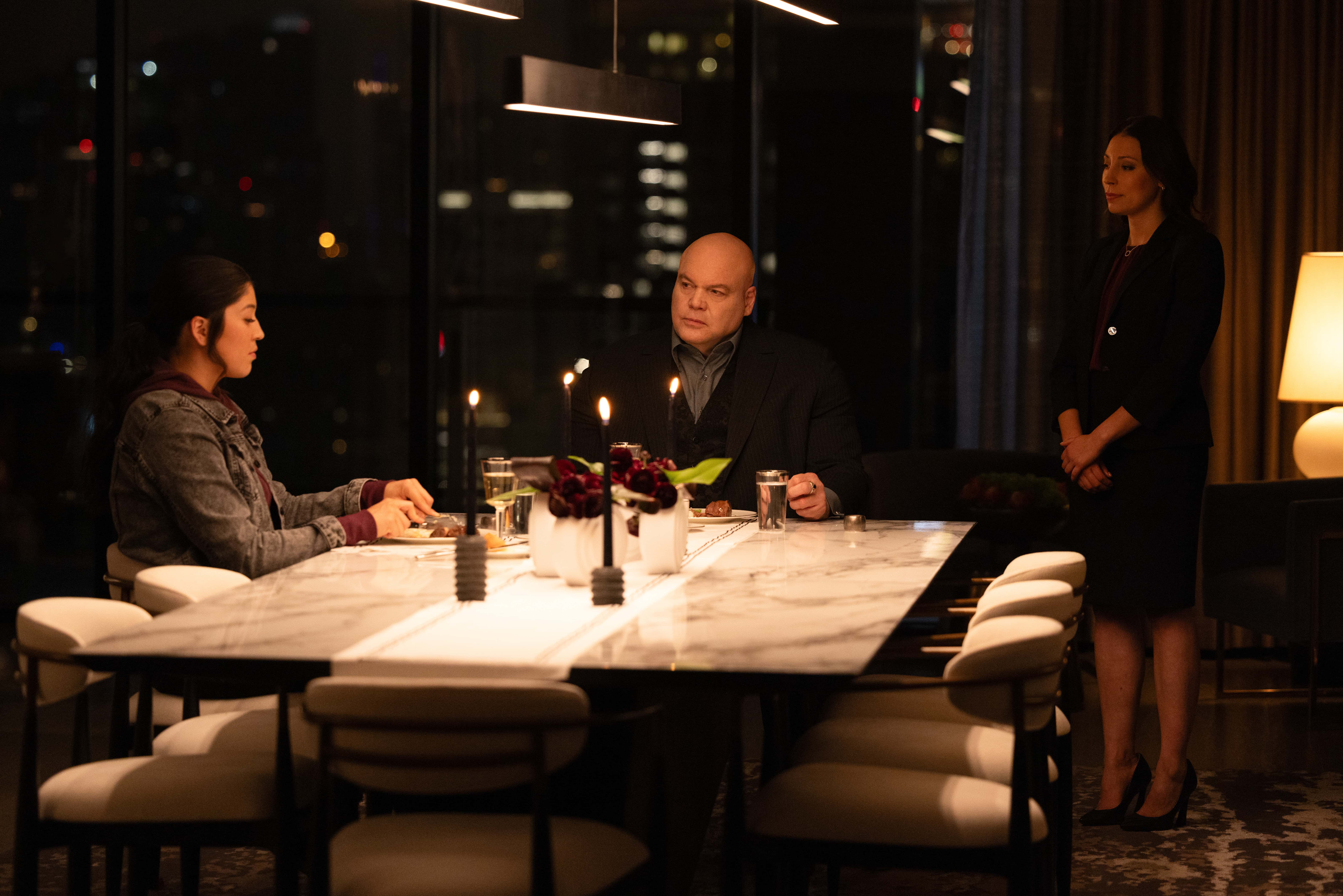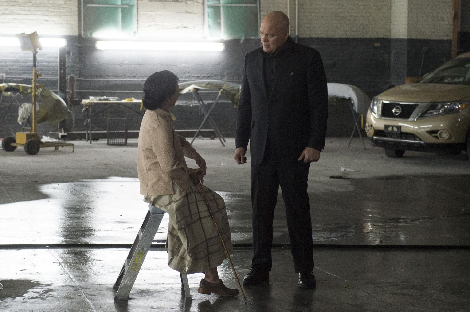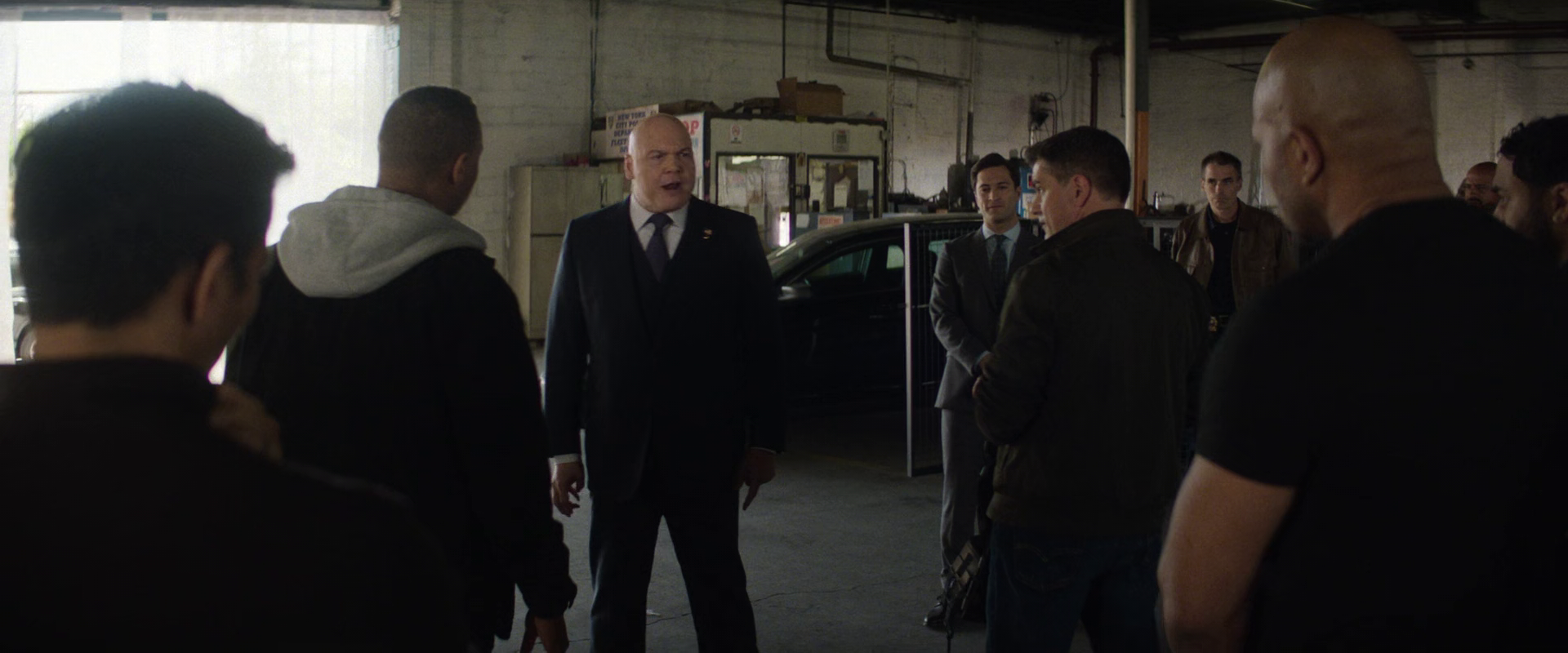 Despite them all sharing the laugh together, Murdock, however, then reminded Fisk that they should not be seen to be talking together as they were both currently on opposing sides of a law case. Fisk then explained to Marianna about how he had just recently bought all of the apartment properties from Armand Tully which was where Elena Cardenas was living, before he had then began to explain his plans on improving New York City but Marianna stopped him, noting that Murdock was a customer of the gallery who was just looking to buy some artworks and was not a donor for his political campaign.