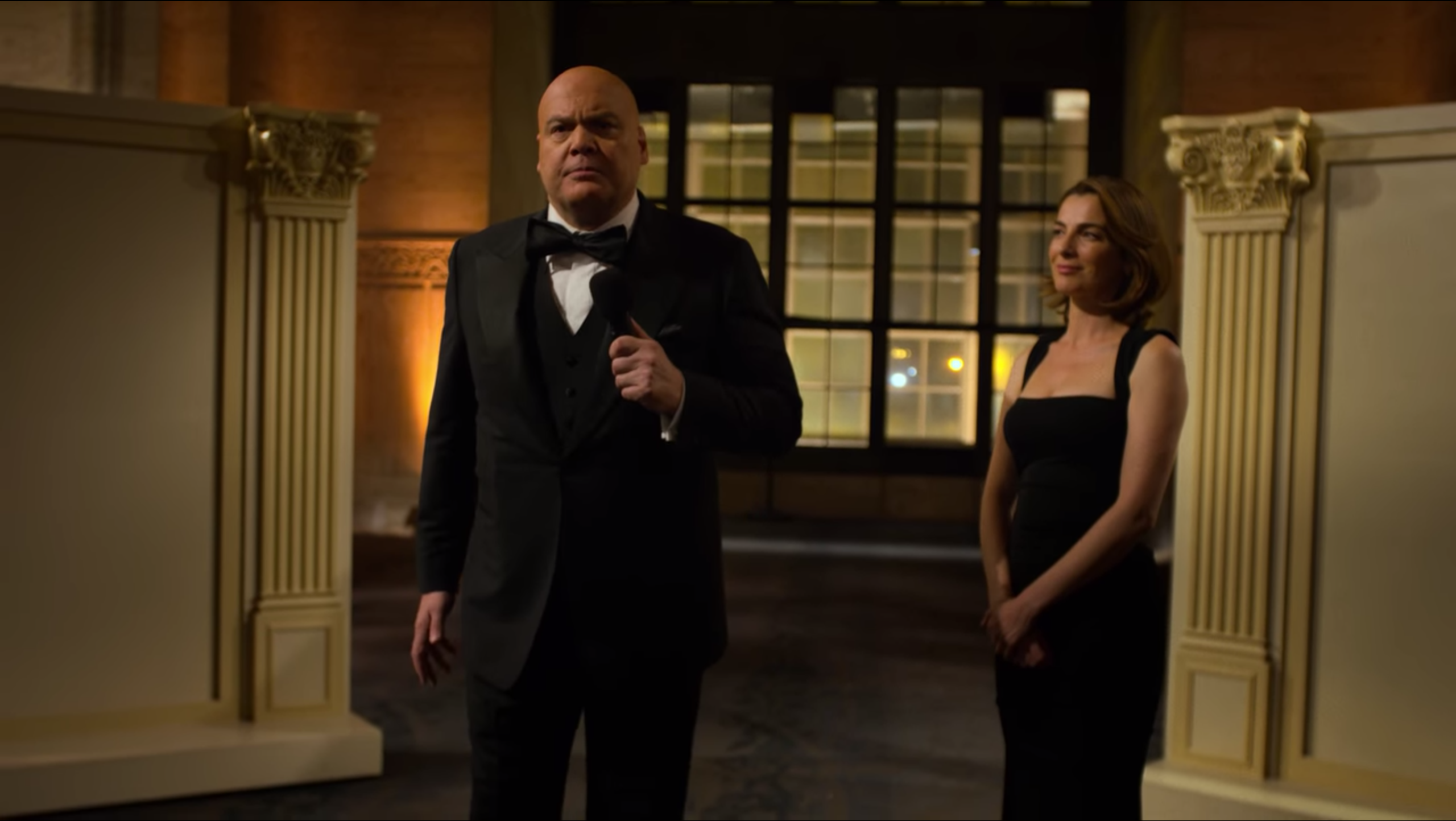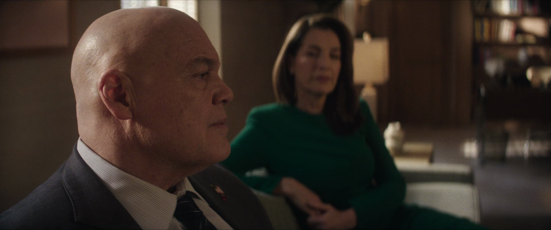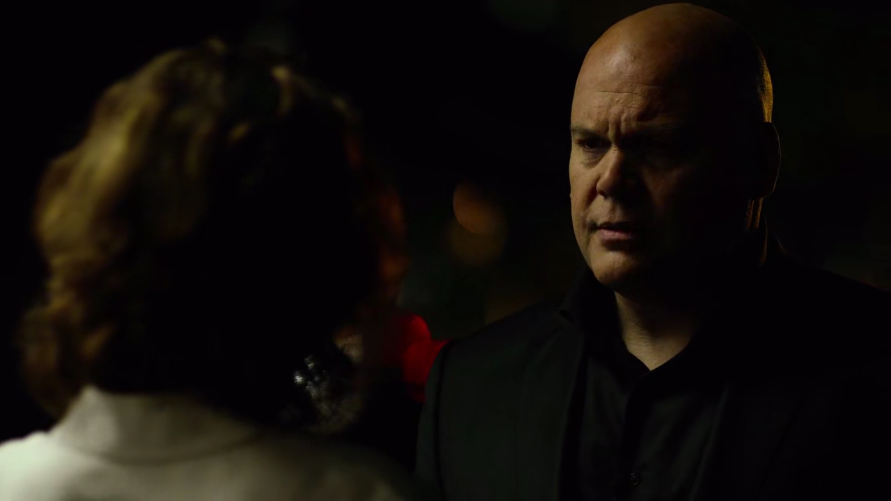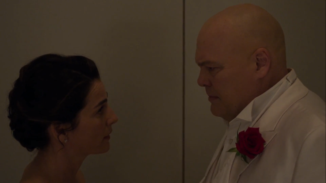 Wilson and Vanessa Fisk were escorted to their room, where Vanessa went to confess, but Wilson stopped her, revealing that he knew she hired Bullseye to killFoggy Nelson. Wilson explained that they would be able to move billions through Red Hook Pier, with the police and the gangs under his control as the mayor.