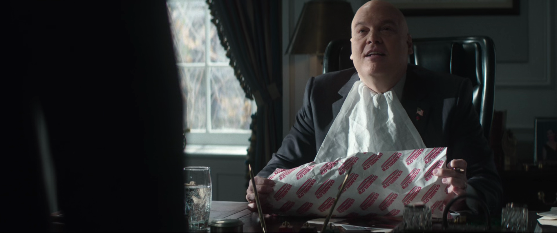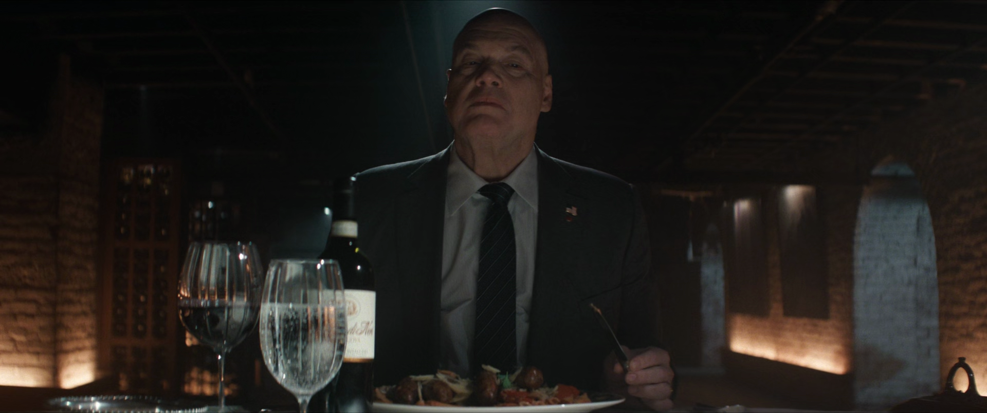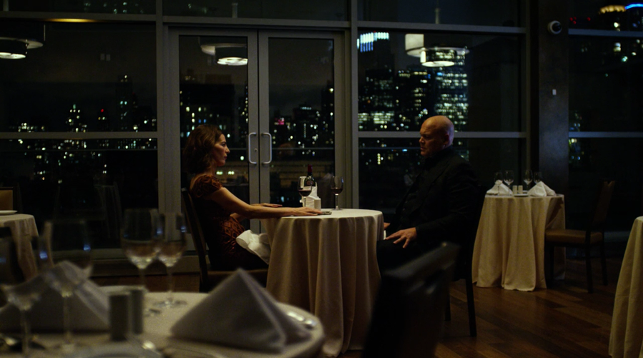 Fisk, wanting to make things right, went to this empty restaurant to have his second date with Vanessa Marianna, who eventually arrived after Fisk waited. He told Marianna that he wanted to be alone to not be interrupted again like their last date before declaring that he will be honest about himself and his actions to her. Fisk and Marianna began their second date with Marcel as their waiter, serving them wine and dinner. Fisk and Marianna talked about the latter's former lover and James Wesley before Fisk talked about his interests in wanting to rebuild New York City perfectly in his image. Marianna then pointed out Fisk's cufflinks, causing Fisk to briefly mention his late father before addressing the secret handgun Marianna had brought to the restaurant in her purse. Marianna stated that she brought the gun because she knew how dangerous Fisk was. Fisk confessed that his business venture causes people to be hurt and is unafraid to use whatever means necessary to refine New York City. Convinced, Marianna handed the gun over to Fisk before the pair resumed their dinner. Later, an explosion occurred in the distance outside of the restaurant, and Fisk told Marianna that the explosion caused the destruction of the Russian Mafia, to which Marianna approved. The pair left the restaurant together before the streets would close as Fisk paid Marcel for his services.