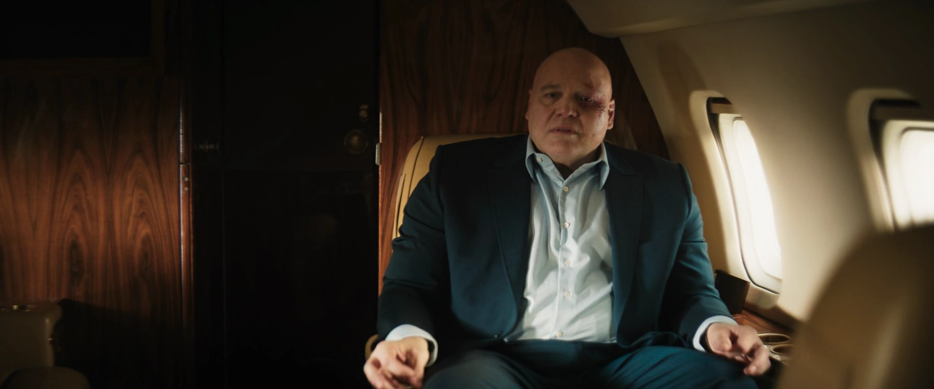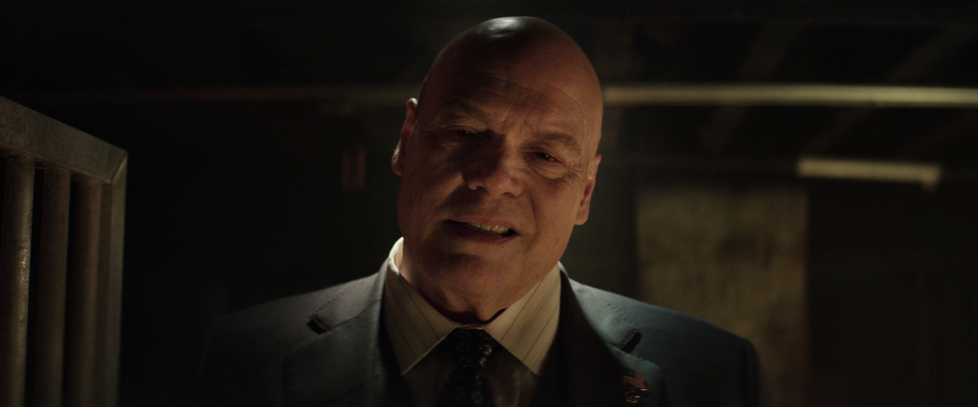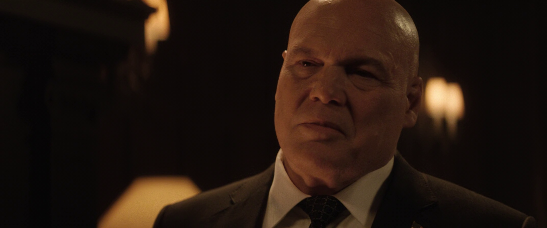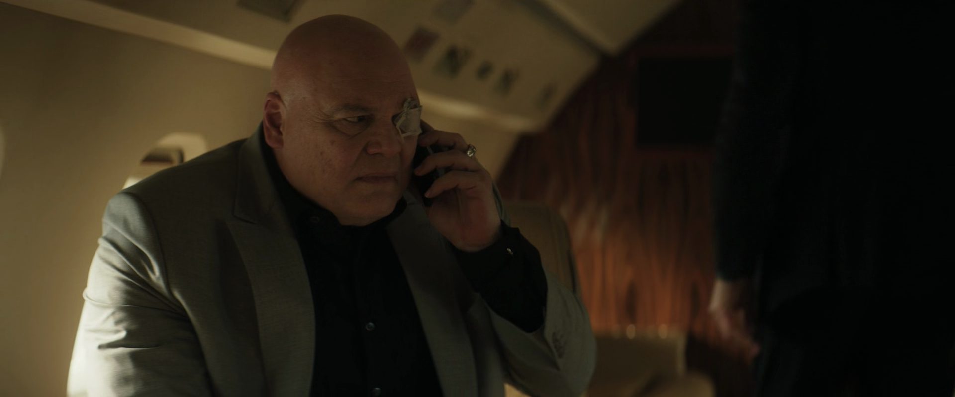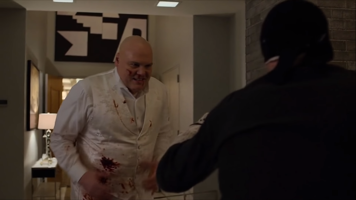 Hawkeye Costume Designer Michael Crow revealed that it was intended to move Kingpin away from his "polished look" in Daredevil as Vincent D'Onofrio wanted him to look "a little more down and out and grittier than he had previously been [in Daredevil],"[65] as "[Kingpin] has lost the power that he had [once] in Daredevil."[66]