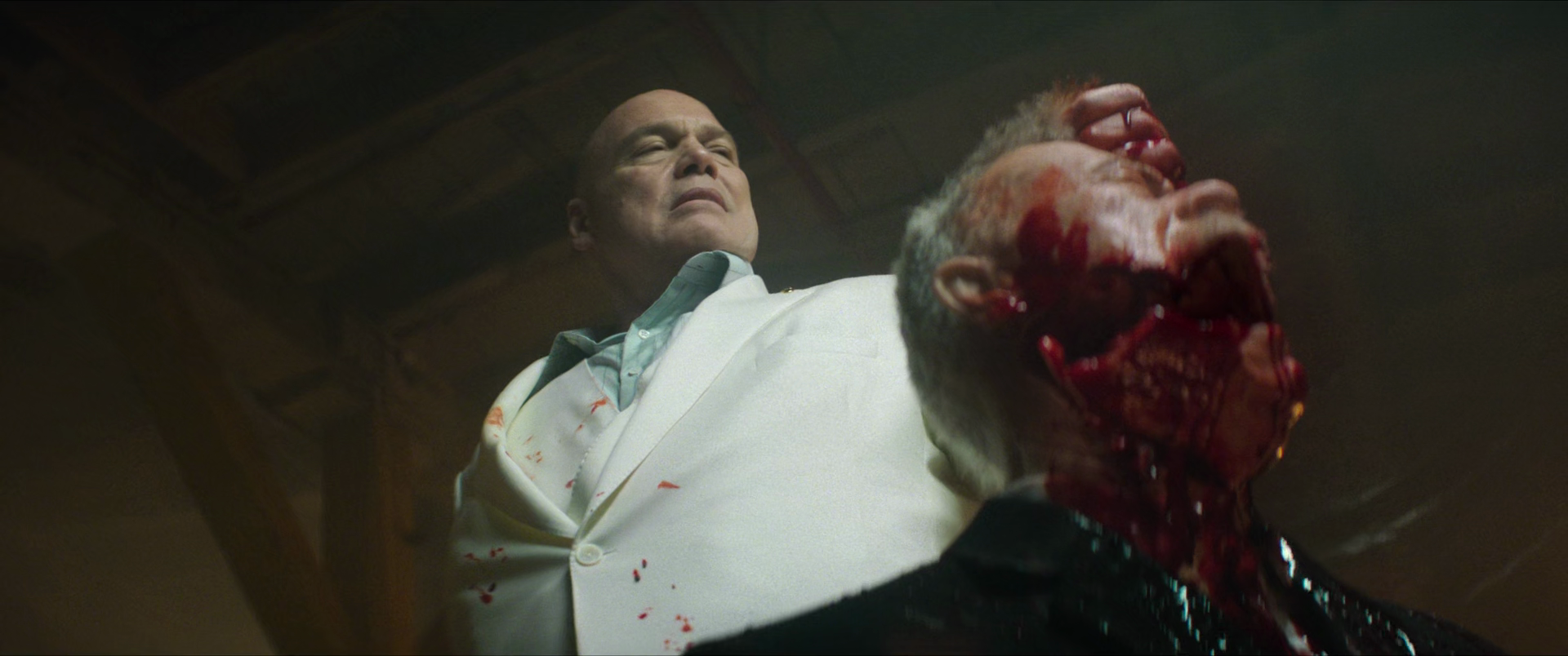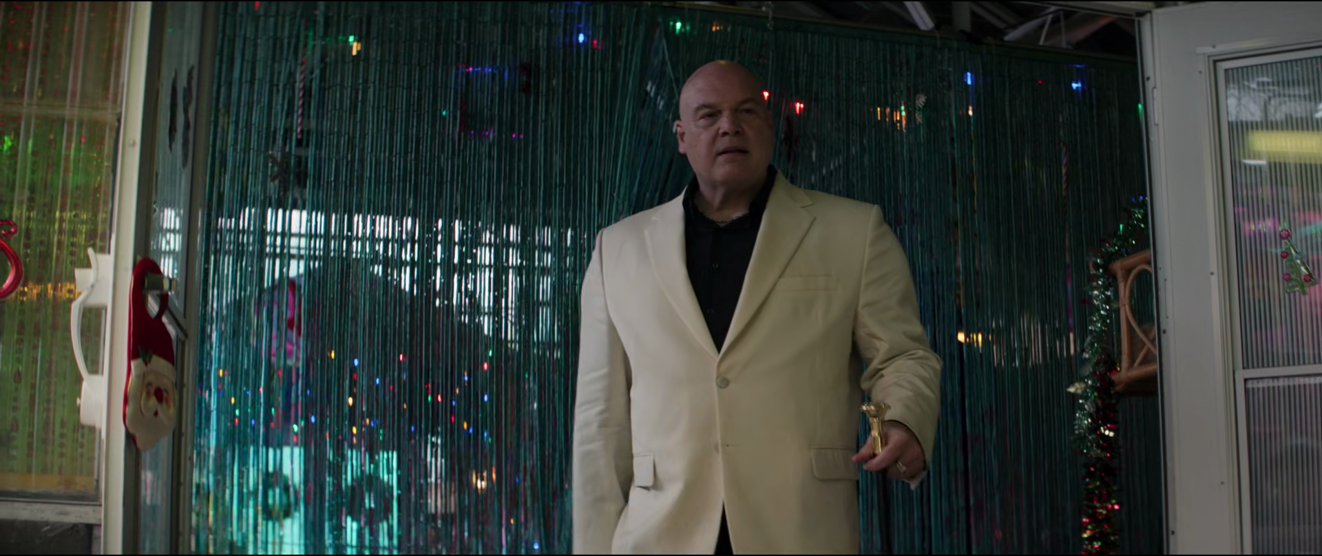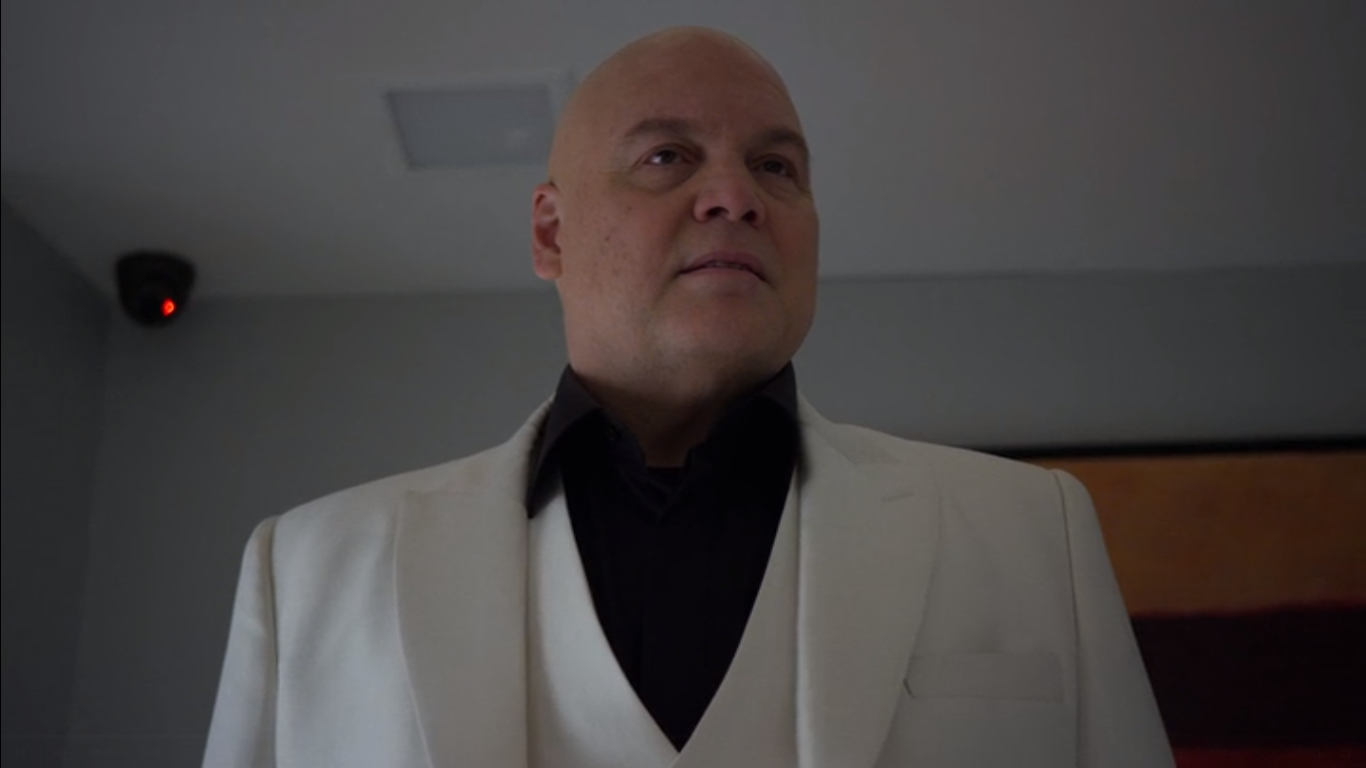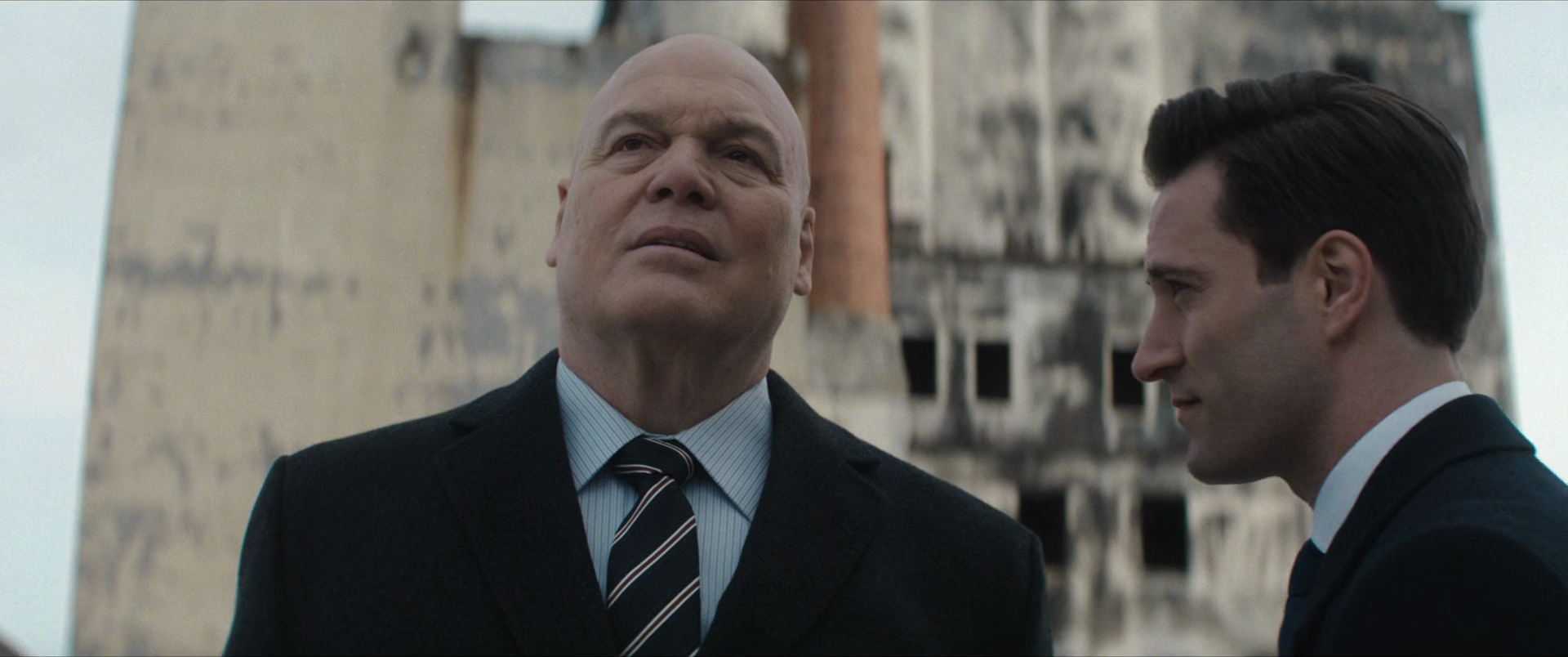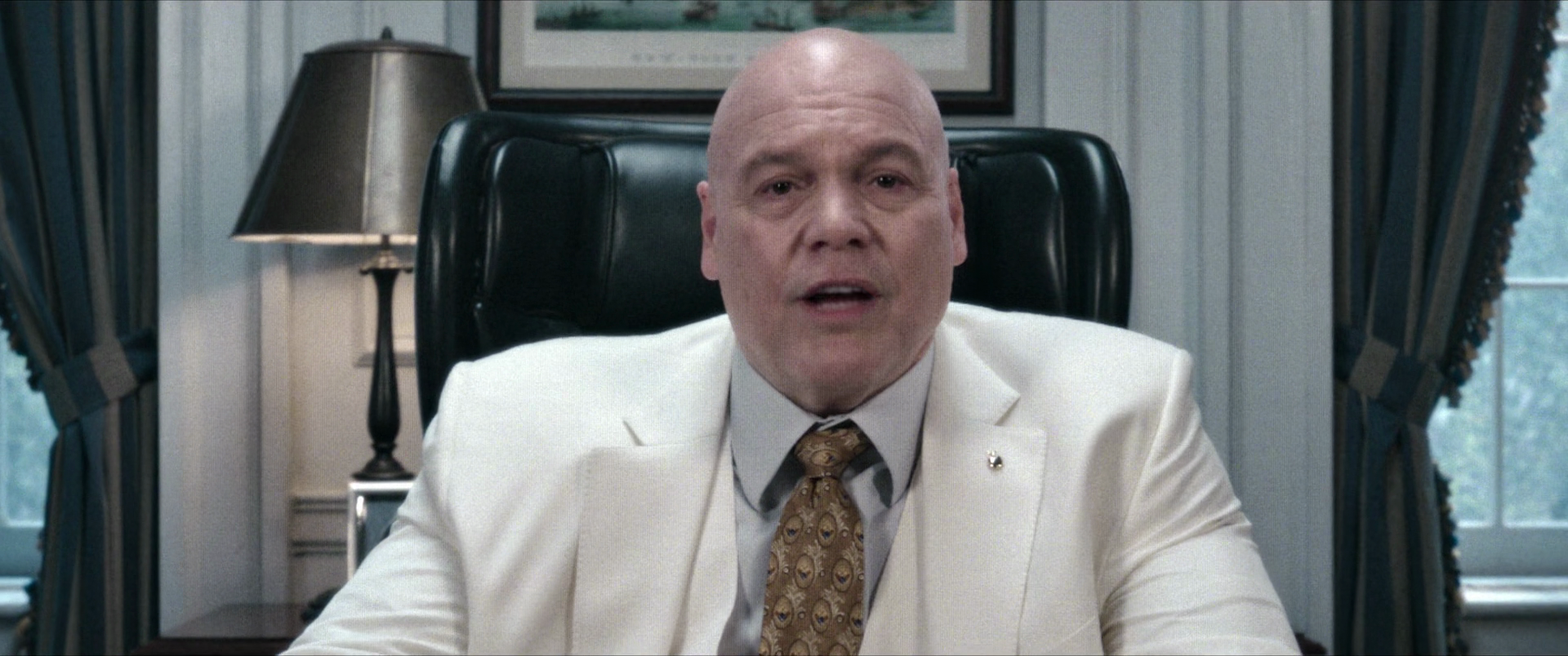 Hawkeye Costume Designer Michael Crow revealed that it was intended to move Kingpin away from his "polished look" in Daredevil as Vincent D'Onofrio wanted him to look "a little more down and out and grittier than he had previously been [in Daredevil],"[65] as "[Kingpin] has lost the power that he had [once] in Daredevil."[66]