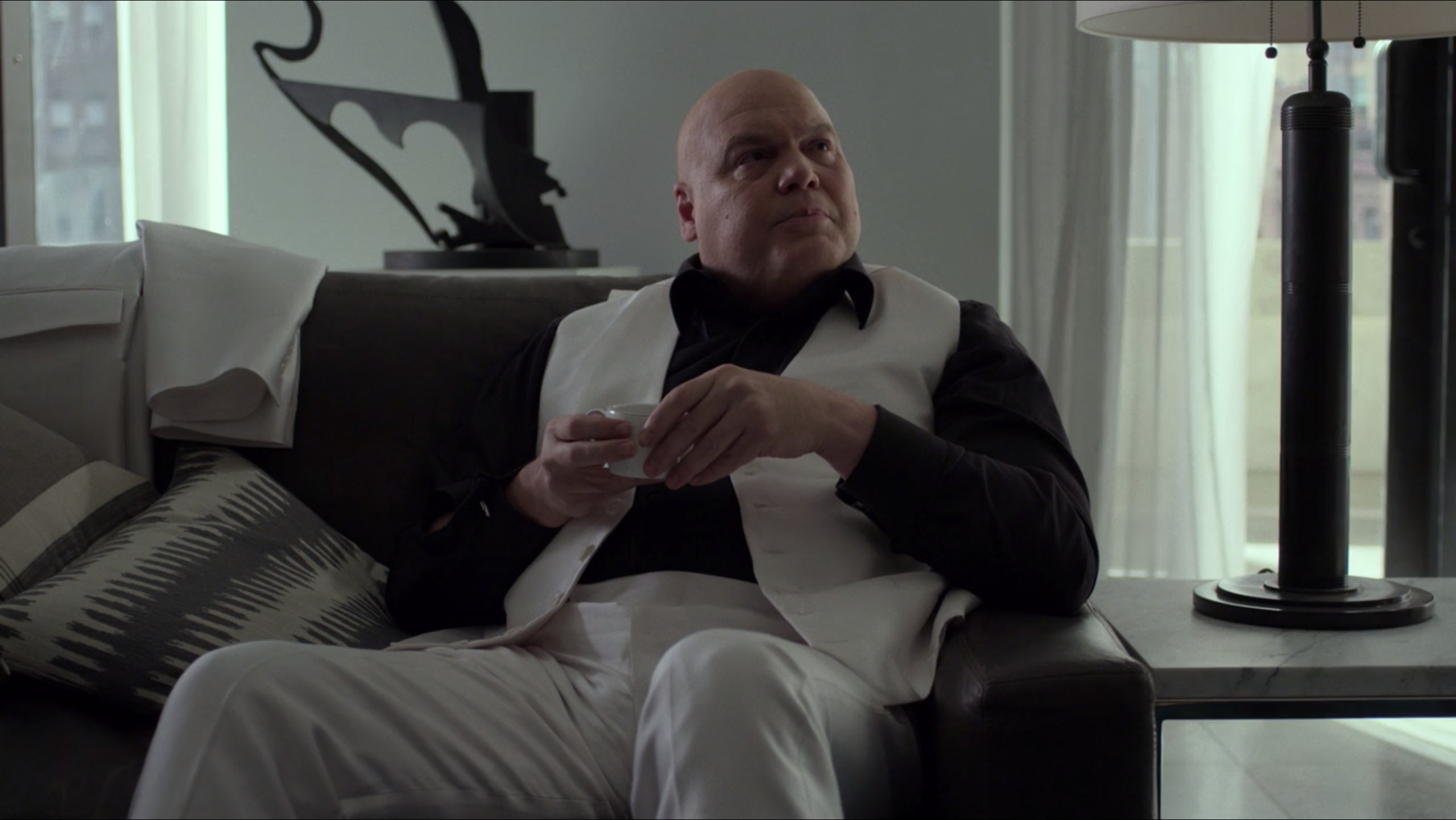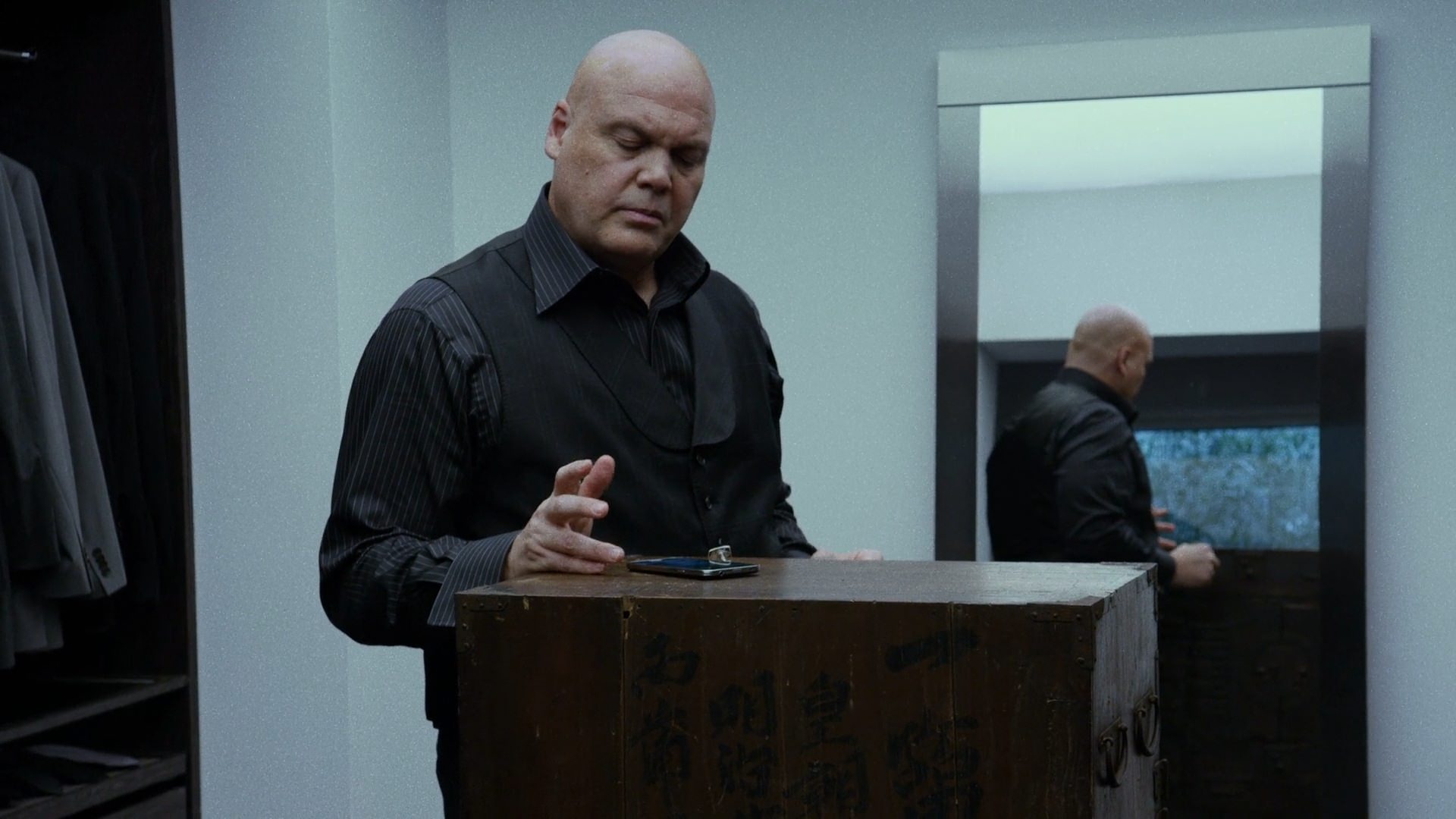 The next day, Fisk was once again awoken in the night by nightmares of his past, causing him to get up and stare long and hard at his new painting. As usual, Fisk began his morning routine by making his own breakfast and putting on his suit, only to be interrupted by James Wesley calling him on the phone. Answering, Fisk was informed that Madame Gao was currently on her way to his Penthouse to discuss recent events, so Fisk requested that Wesley arrive first.