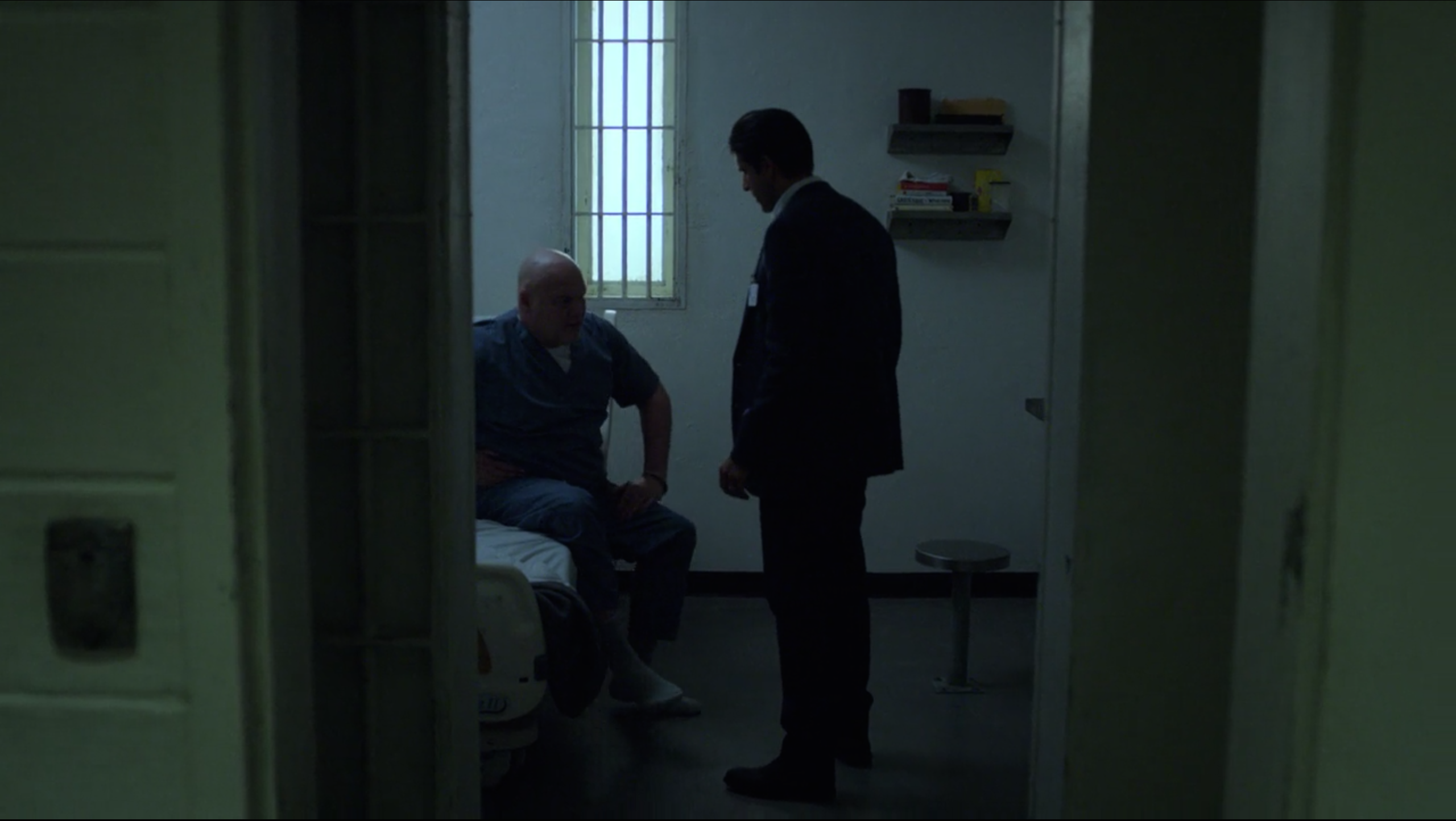 With everything building up inside of him, Fisk went to visit Adam, bringing an axe with him. Fisk walked up to Adam's cell, telling him that his wife would want him to release Adam, but that he could not do that. Fisk expressed that they had a shared experience, and spoke about how using a tool had aided him in fights when he was younger.