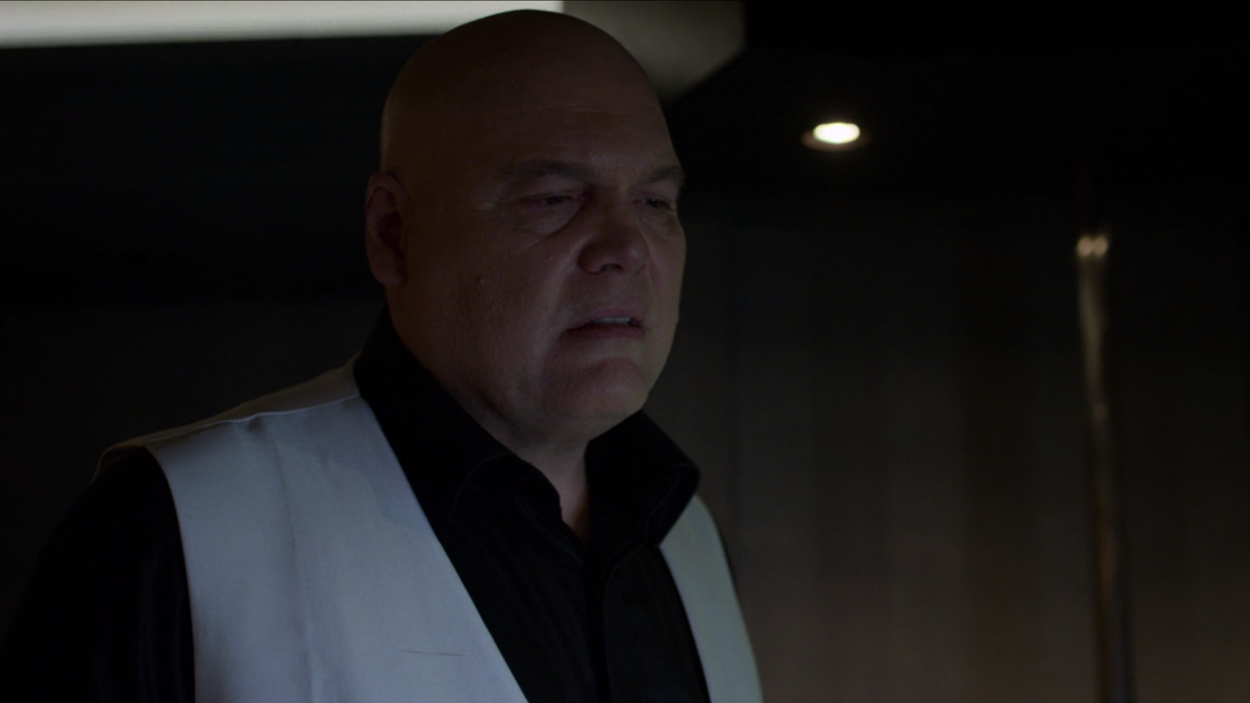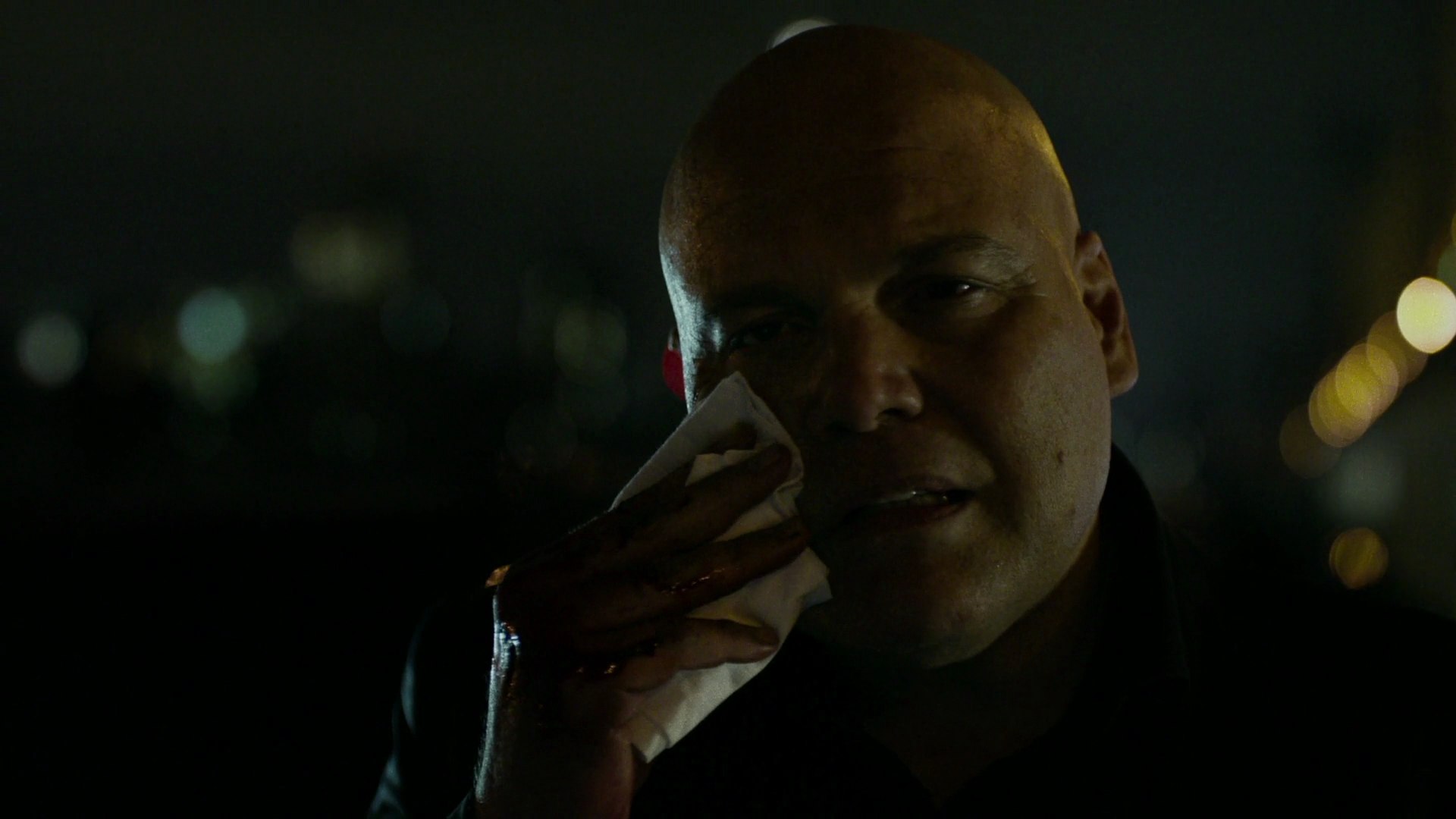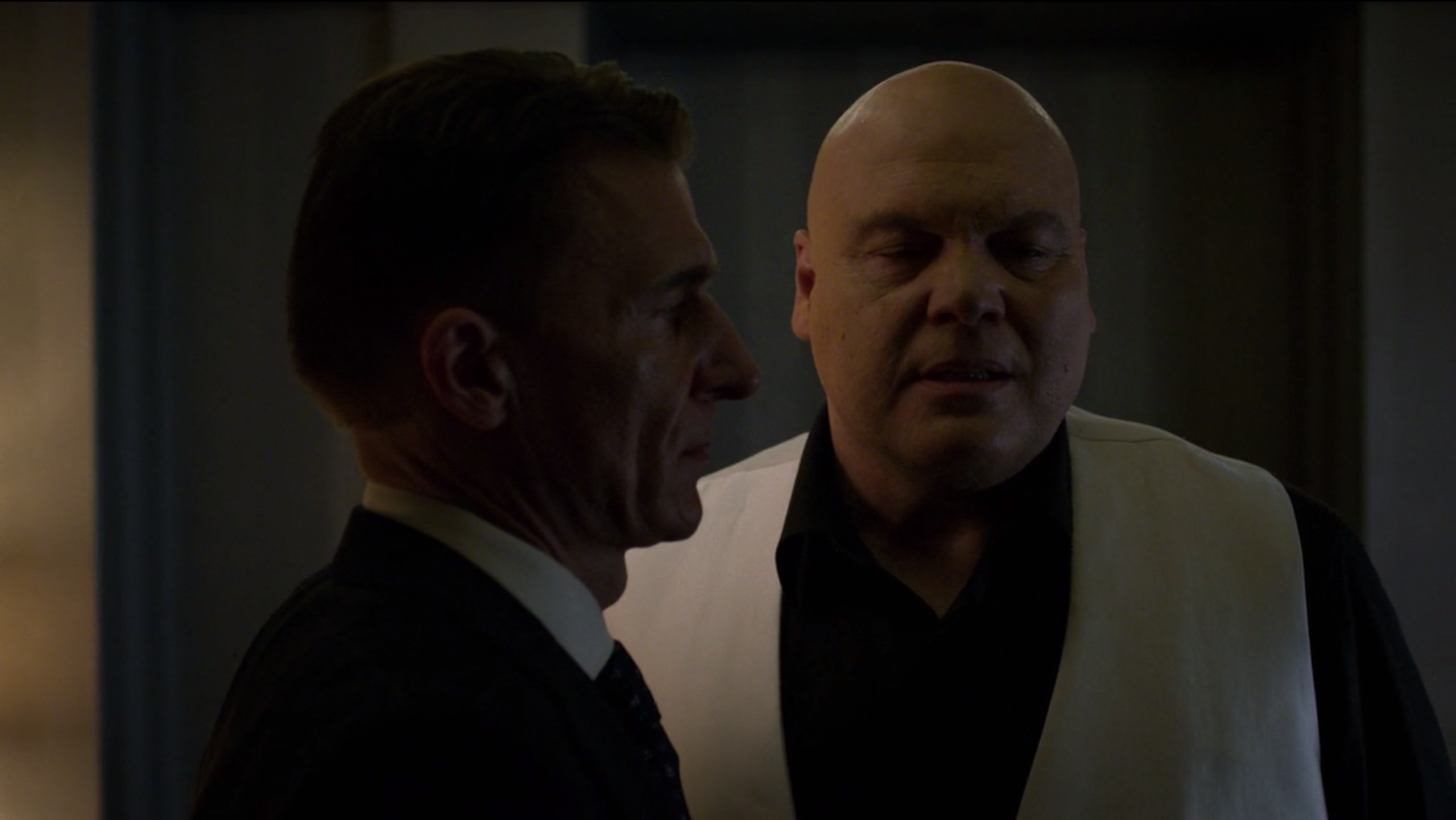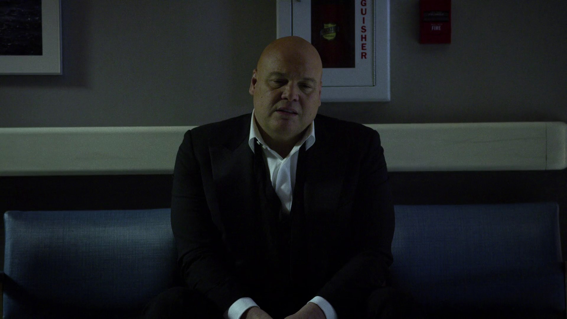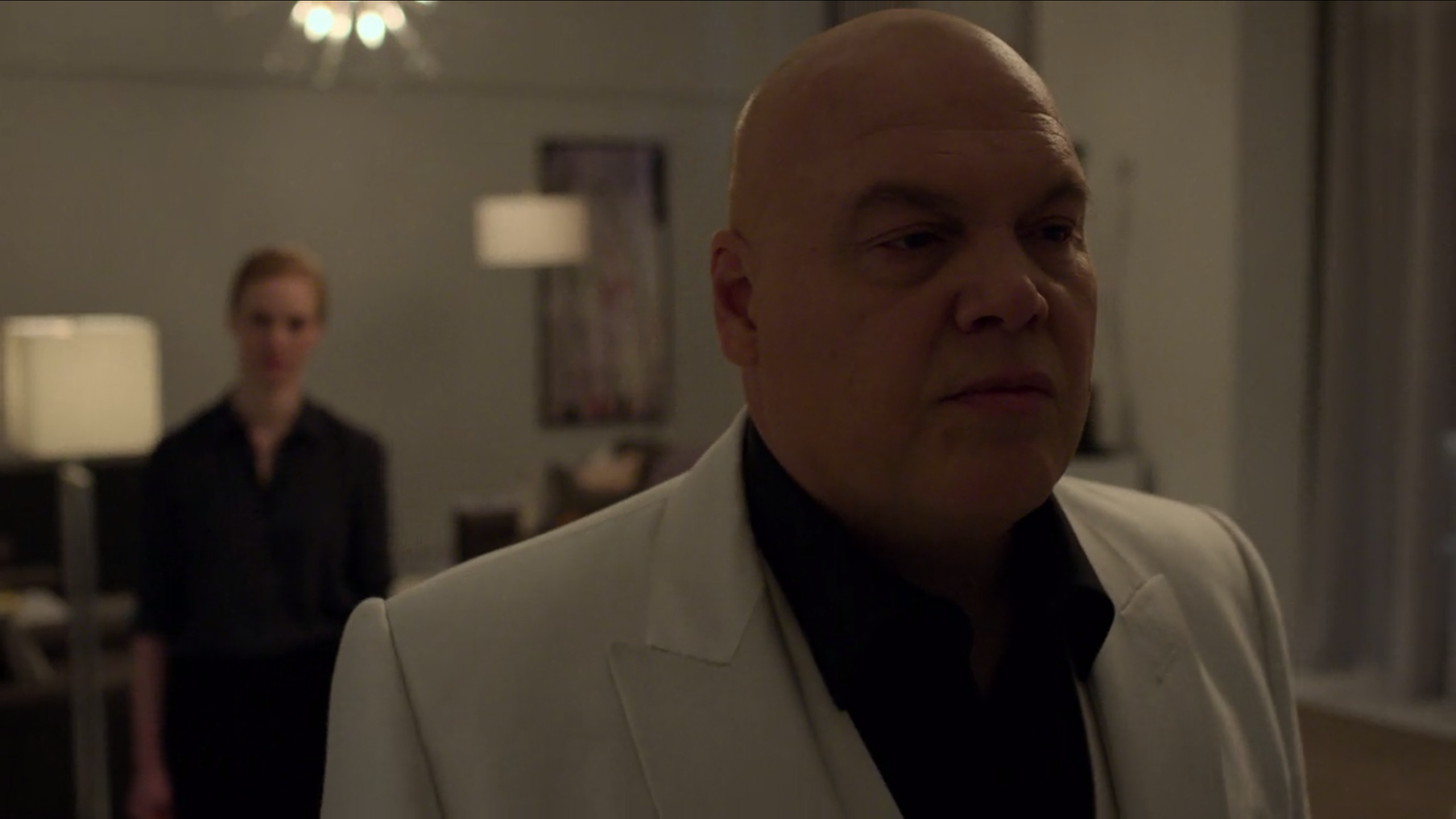 Fisk remained in the same spot in his Penthouse and looked out over the New York City skyline for hours. When James Wesley returned, Fisk ordered him to leave, claiming that if he needed him he would have asked, which Wesley disagreed with. Wesley, however, revealed he had brought Vanessa Marianna with him and left them alone. Fisk, still emotional, asked Marianna to leave; she instead commented on how Wesley was worried about him, but Fisk insisted he should not be, leading to Marianna asking him to tell her the truth.