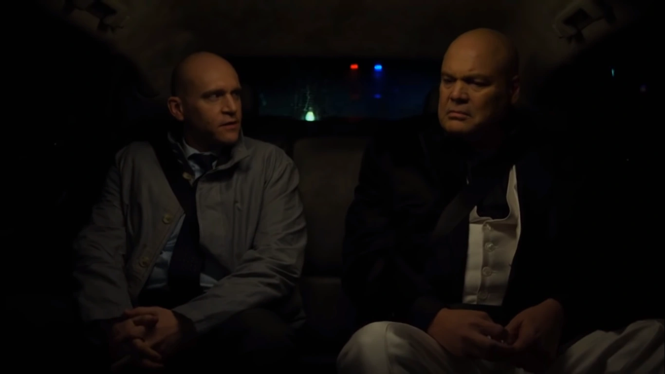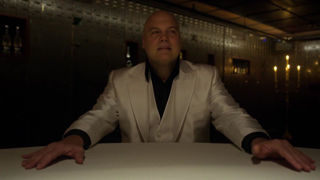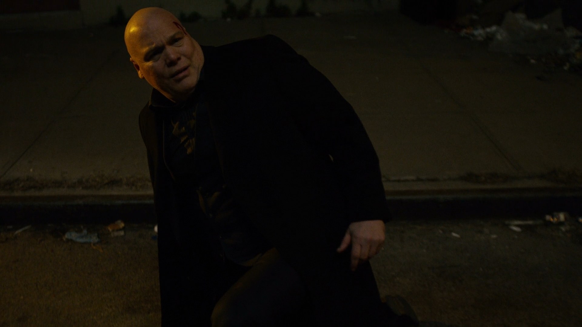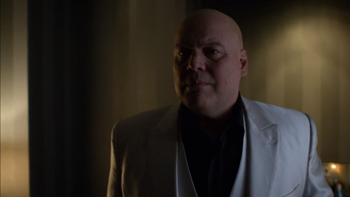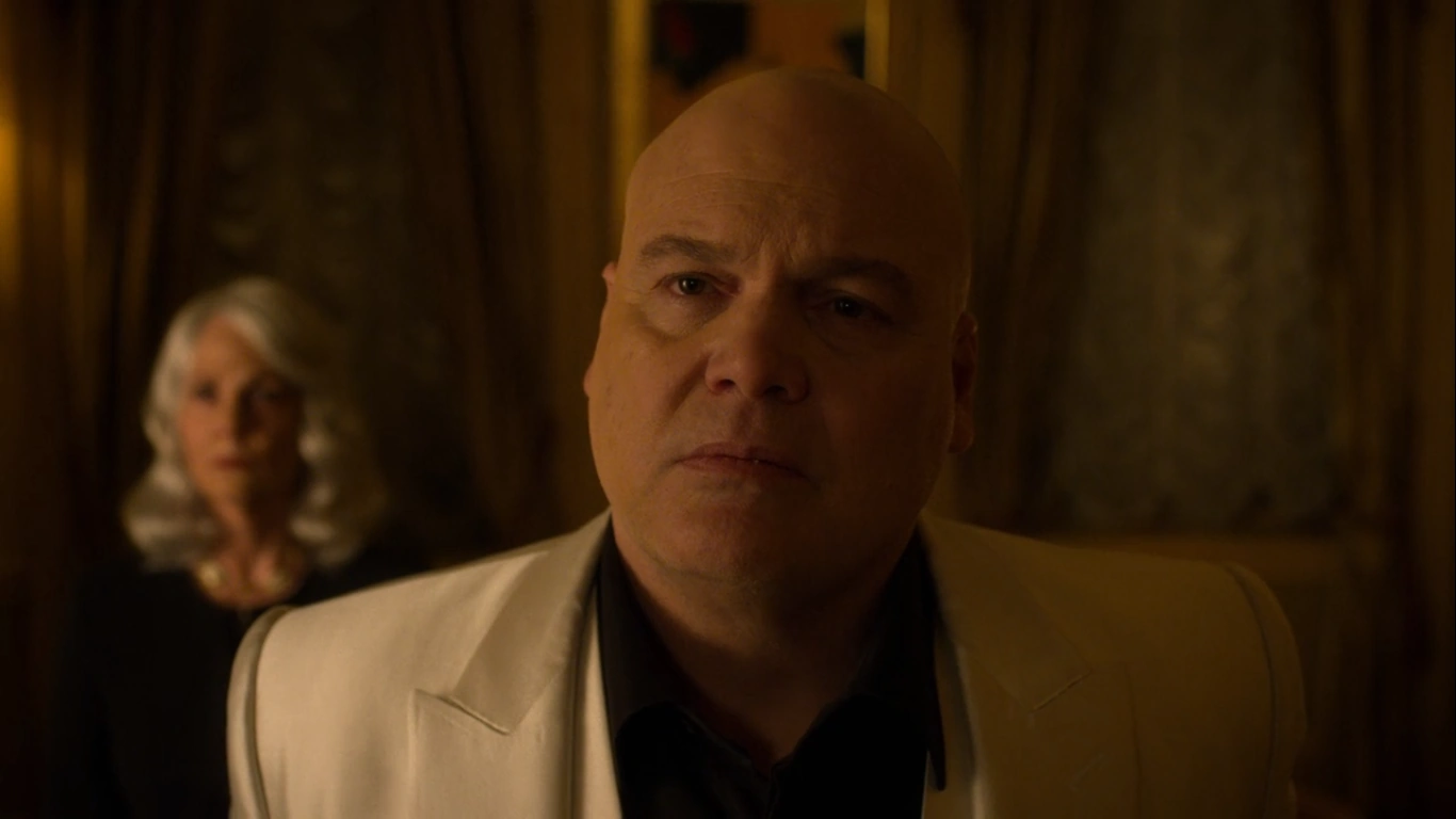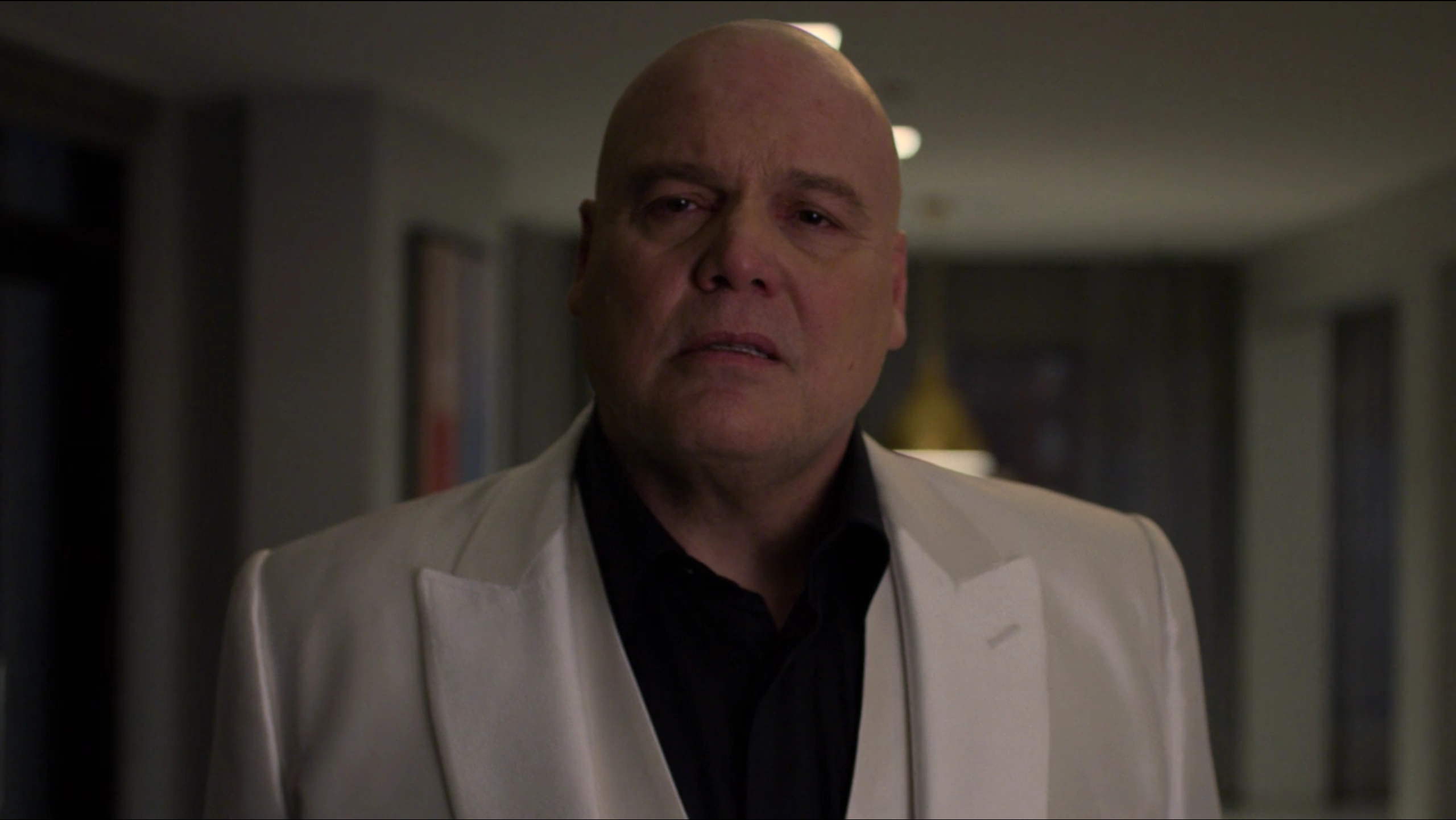 Fisk remained in the same spot in his Penthouse and looked out over the New York City skyline for hours. When James Wesley returned, Fisk ordered him to leave, claiming that if he needed him he would have asked, which Wesley disagreed with. Wesley, however, revealed he had brought Vanessa Marianna with him and left them alone. Fisk, still emotional, asked Marianna to leave; she instead commented on how Wesley was worried about him, but Fisk insisted he should not be, leading to Marianna asking him to tell her the truth.