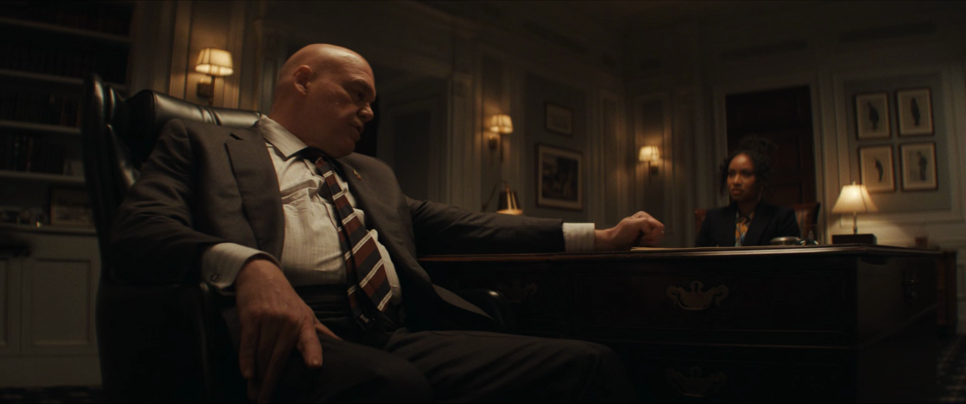 Fisk was visited by Angie Kim, who revealed her suspicion that Bastian Cooper was Muse based off of what she had found out about his history. Fisk asked Kim about Daredevil's return, so she confirmed that he was back. Fisk dismissed Kim, telling her that he would handle the Muse case. Connor Powell called Fisk and reported an encounter he had with Daredevil in Muse's lair, and that Heather Glenn was Muse's next target. Fisk ordered the Anti-Vigilante Task Force to find Muse and save Glenn.