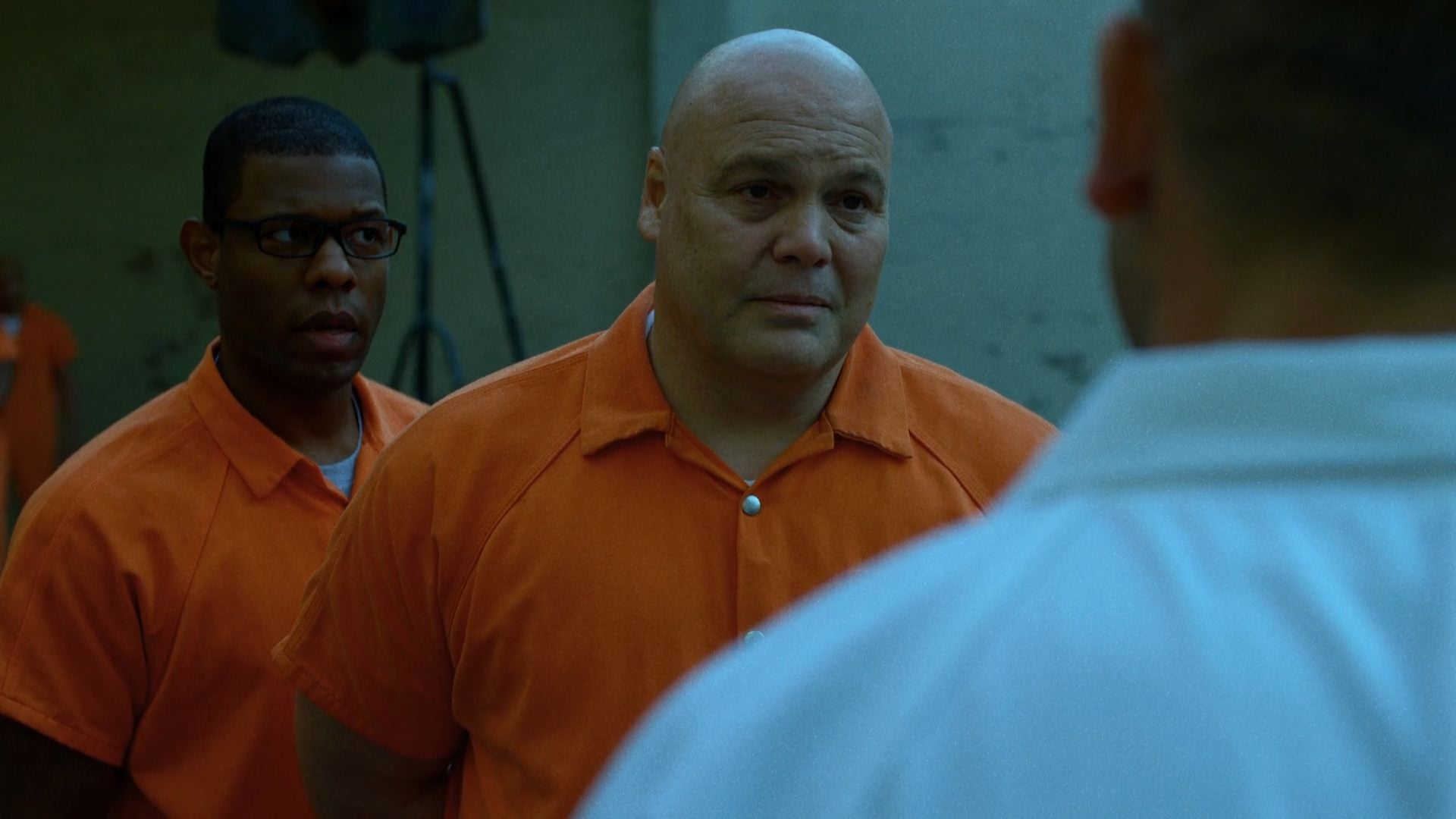 Following Fisk's arrest, he was brought to the Rikers Island to serve his sentence. Despite Benjamin Donovan's best efforts, United States Department of Justice refused to drop the charges against Fisk, and he recommended Fisk to serve his sentence as quietly as possible. However, Fisk was encountered by Dutton, who had already managed to control half of the prison, much to Fisk's displeasure. Using the rest of his money, Fisk bribed several prisoners and guards, and even brought Frank Castle into Rikers. Castle successfully murdered Dutton, which had allowed Fisk to take control over the prison. However, Fisk was annoyed by his scenery and cut the deal with the FBI, eventually forcing them to release him from Rikers and relocate Fisk to the Presidential Hotel.