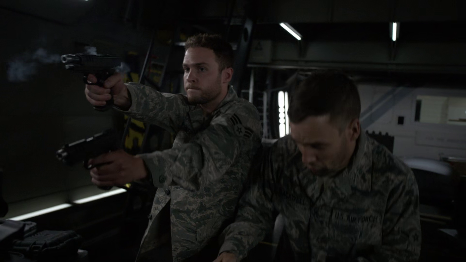 Expert Marksman: Fitz was taught how to handle a handgun as per his S.H.I.E.L.D. training, when he refused to accept Simmons' apparent death, he accurately shot off the locks of the case containing the Monolith with a shotgun. He later resorted to use them to repeatedly shot Hive while possessing Will Daniels' body on Maveth, or to kill R. Giyera using a Cloaked Gun. Fitz greatly improved his marksmanship abilities after his time in the Framework, as shown when he and Lance Hunter reclaimed Zephyr One. Before this, he possessed enough accuracy to shoot Holden Radcliffe's LMD in the head.
