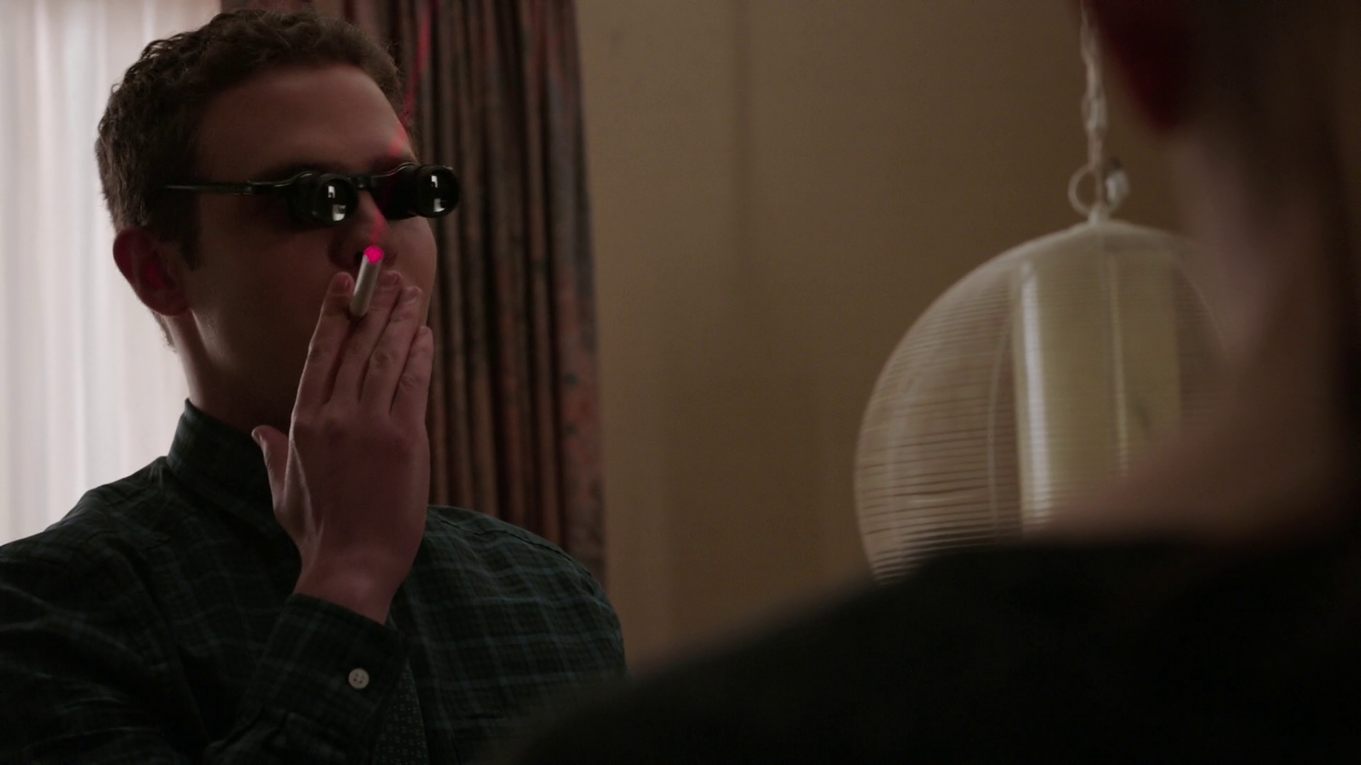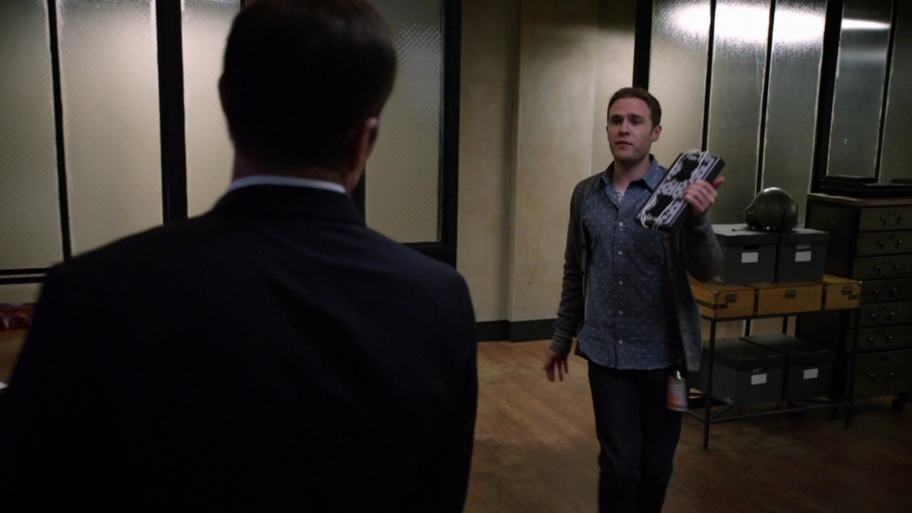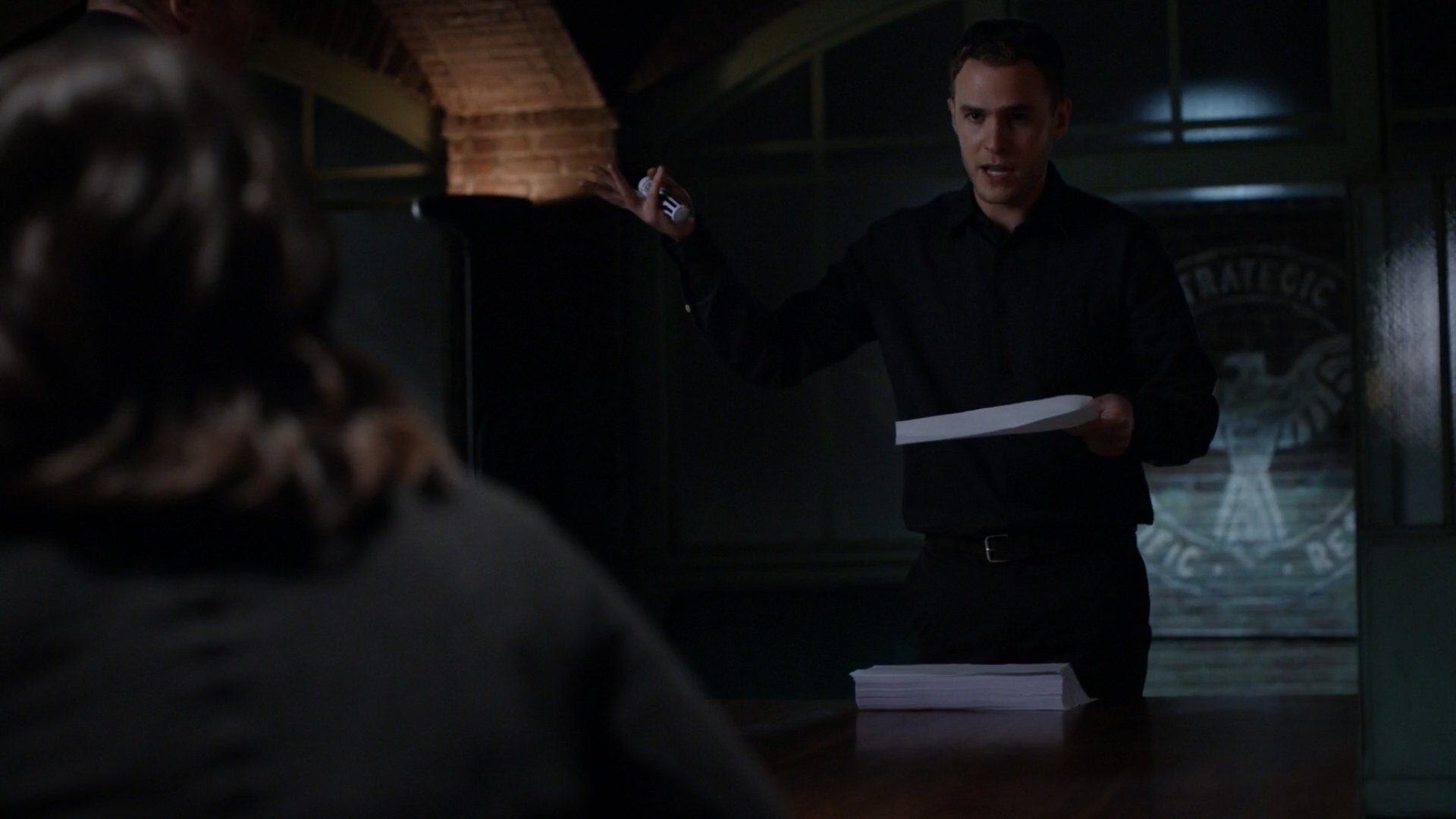 Having created the Backscatter Glasses, Fitz decided to use them for his own personal gain, getting Skye to wear them as he played Grant Ward in poker. While they played, Fitz acted confidently towards Ward, claiming that he could detect his tell which allowed him to win. He then notified Skye to use the glasses to see Ward's cards so he could win, but when she told him that in doing so she would see him naked, Fitz abandoned the plan, to Ward's confusion.[22]