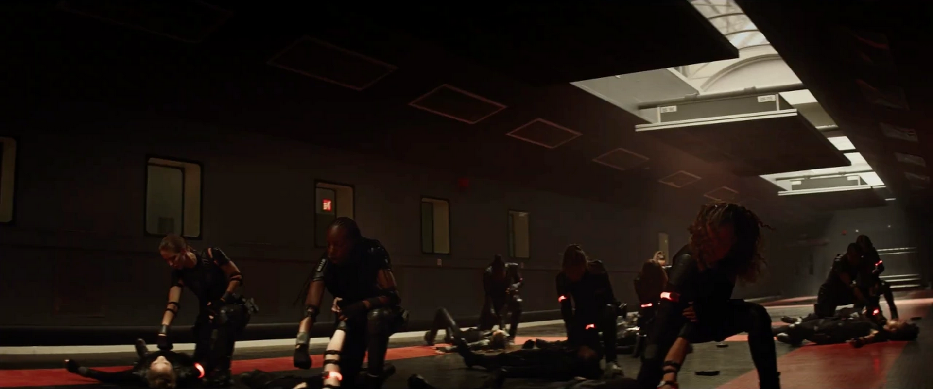 In an alternate scene of Hulk's rampage through the Helicarrier, Romanoff hides from Banner, only to soon be found.