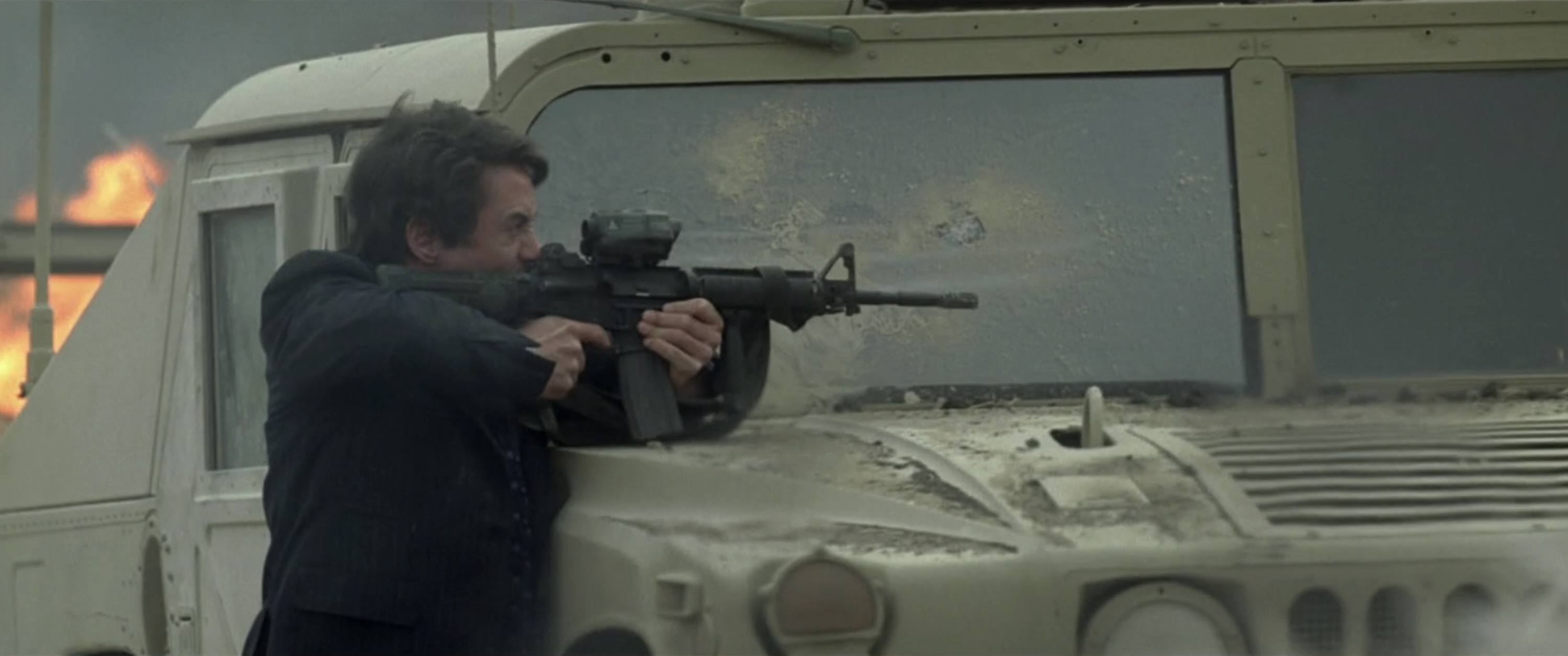 An extended version of the ambush at the beginning of the film, which includes Tony Stark briefly trying to defend himself using a soldier's assault rifle.