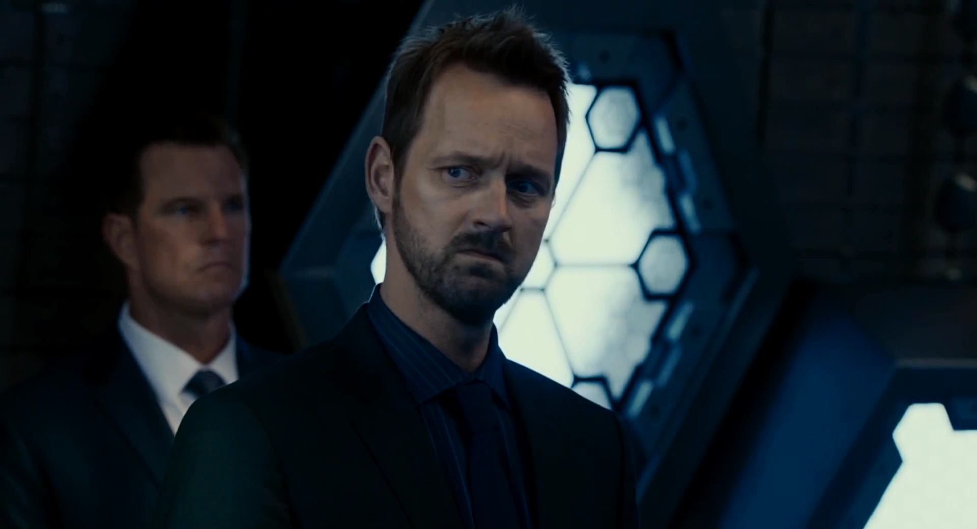 "Obadiah Addresses Scientists": Stane visits the scientists creating his Iron Monger Armor and gives them a speech about what is at stake.