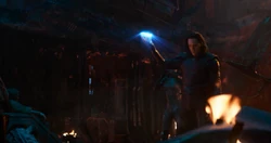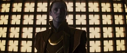 Upon touching the device, Loki's once again skin had turned blue, causing him to resemble a Frost Giant just as he had feared following his encounter with Raze during the Attack on Jotunheim. However, Loki's test was then interrupted as Odin arrived inside the room and ordered his son to stop, but as Loki asked what he was, Odin just insisted he was his son, but Loki did not accept this as an answer and then demanded to know what else he truly was.