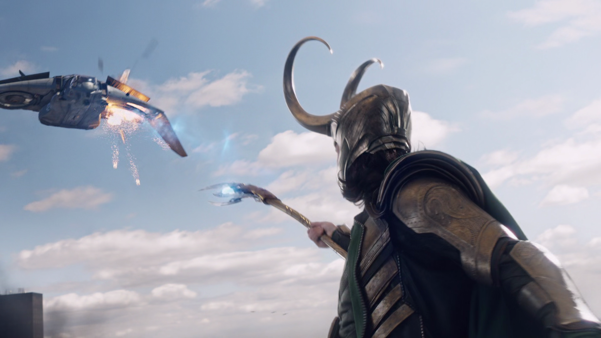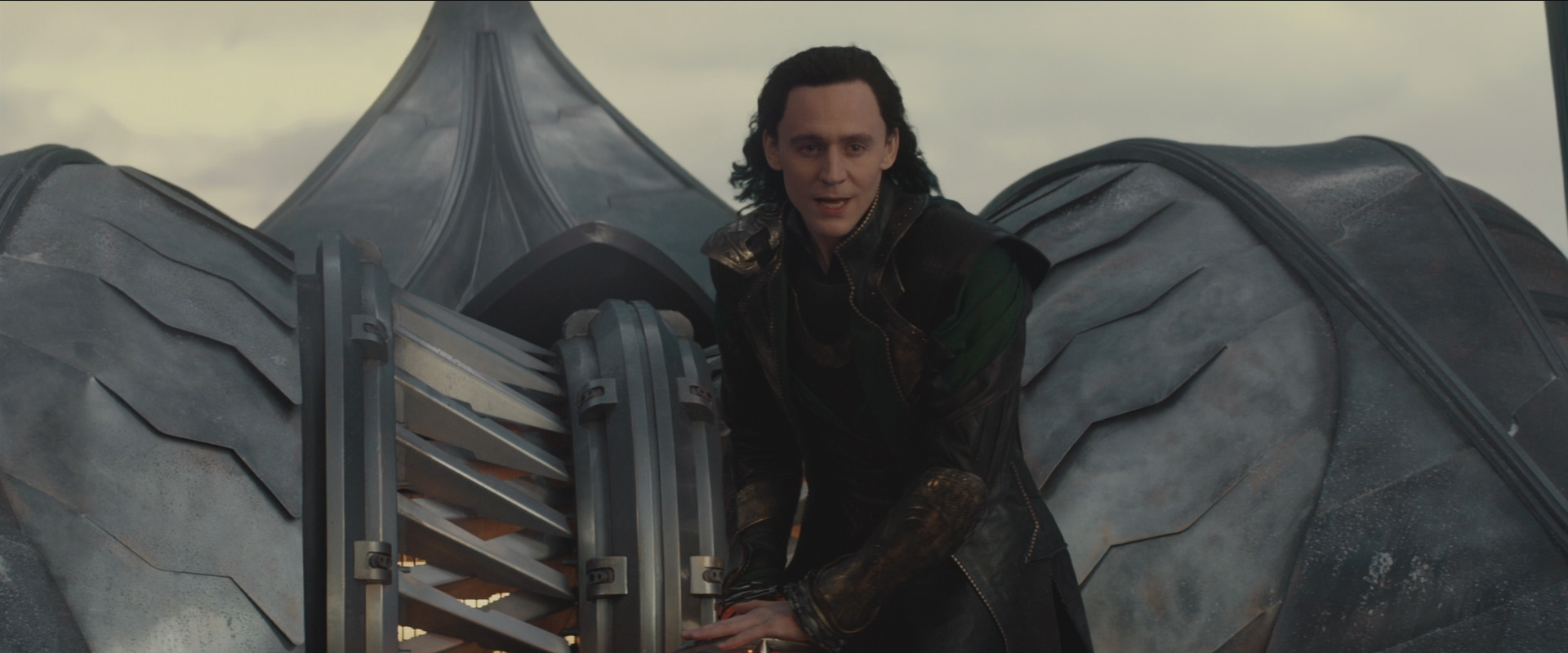 Loki piloting an Asgardian Skiff away to safety
