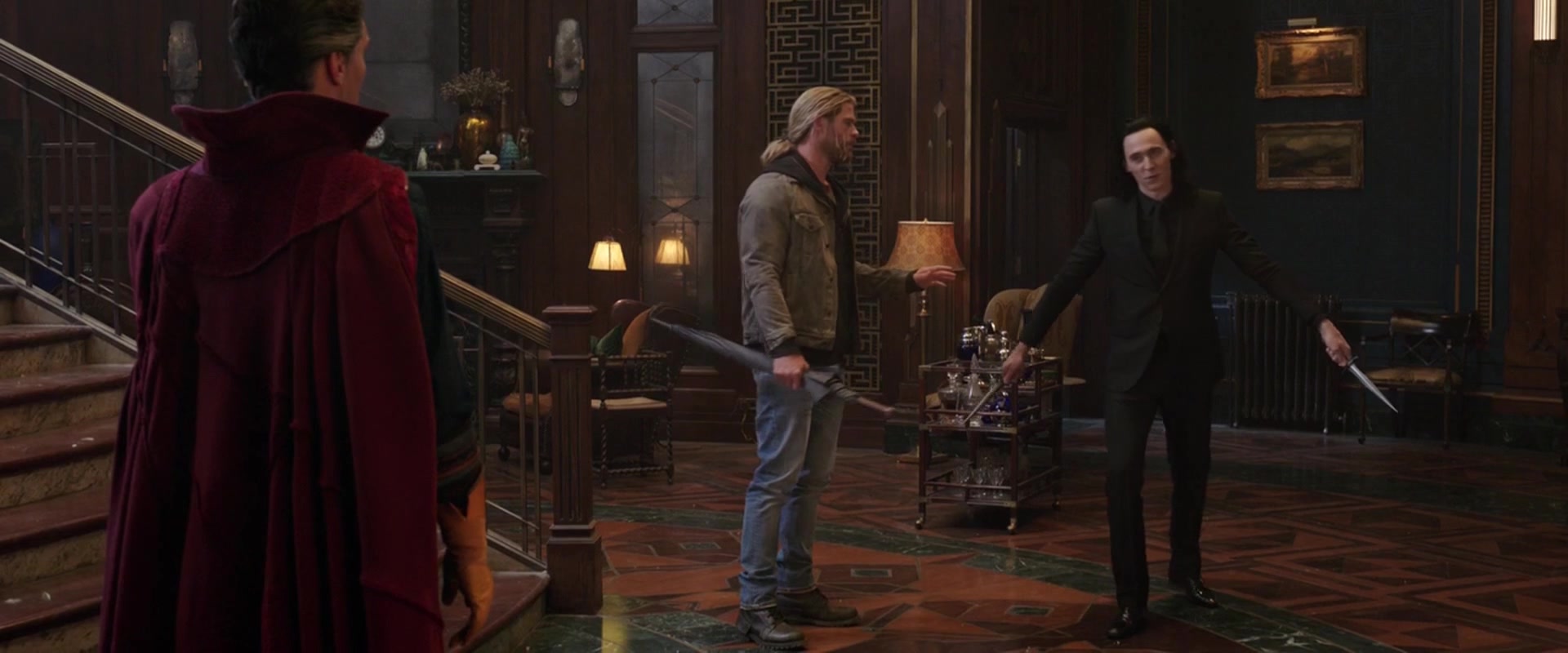 Loki threatens Doctor Strange with his blades