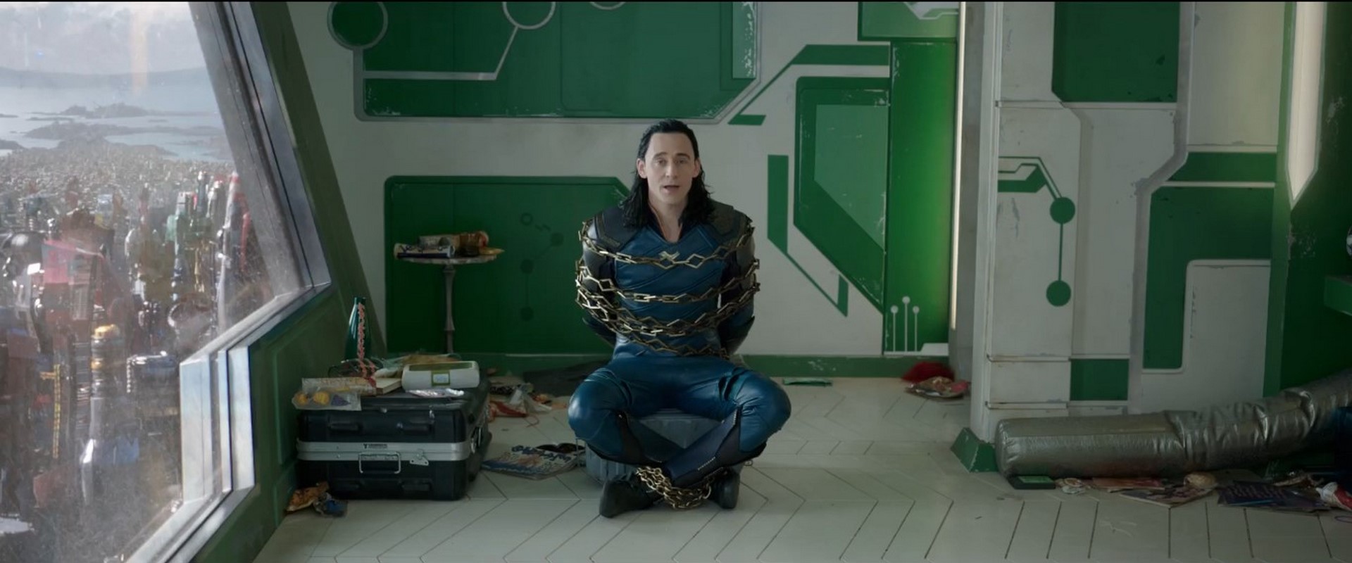 Loki sitting inside of his Asgardian prison cell
