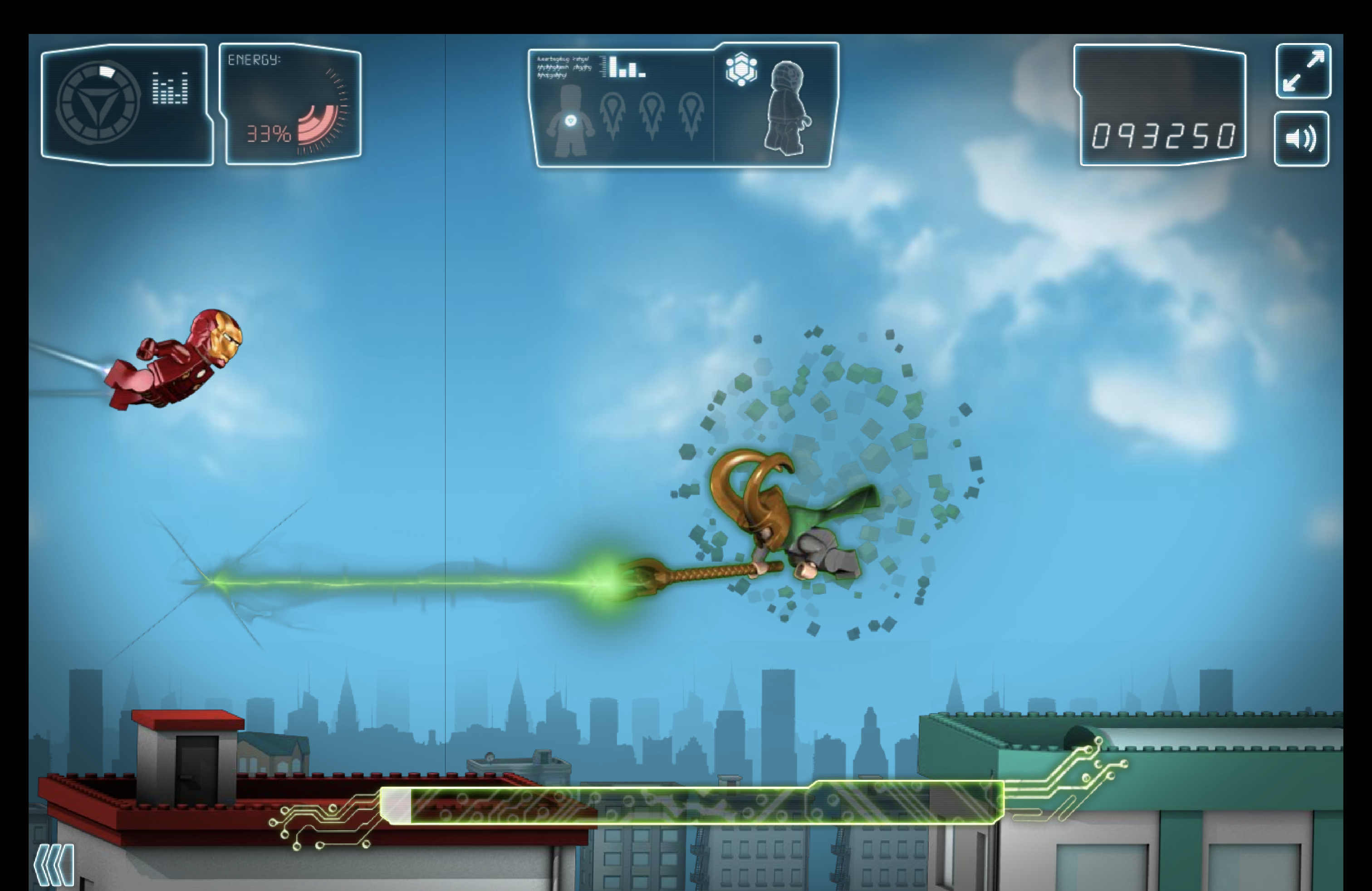 Loki attempts to blast Iron Man