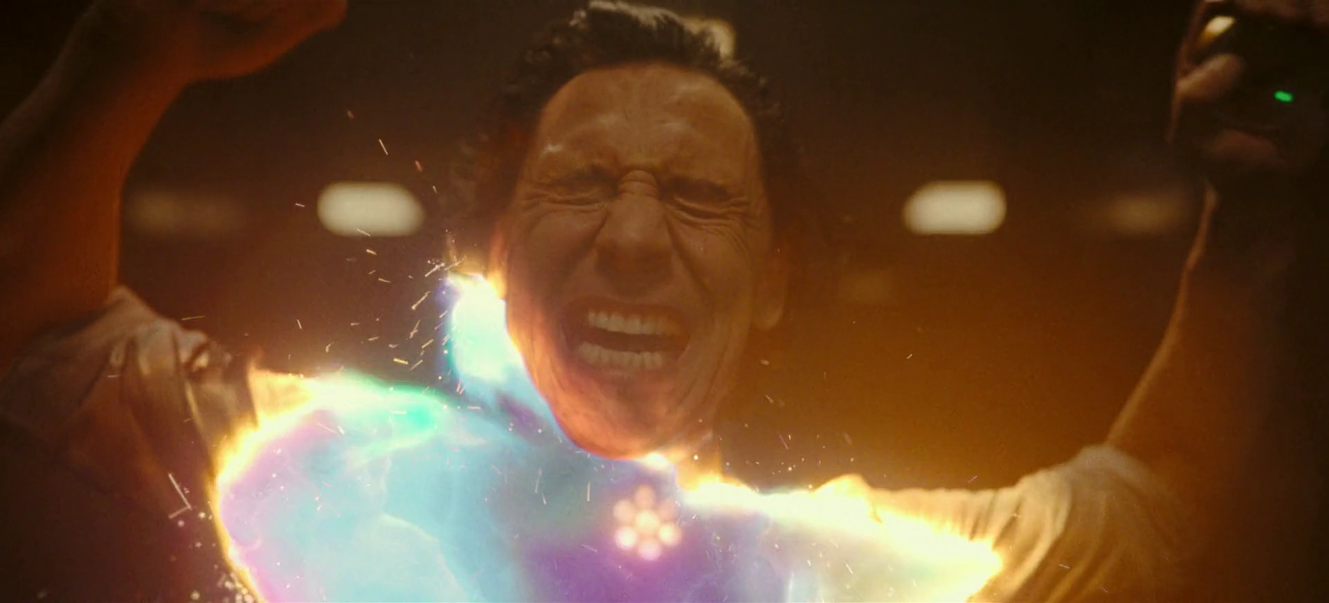 Loki runs away from Mobius M. Mobius and Hunter B-15, who do not recognize him. To evade, he jumps onto a Time Variance Authority Mail Cart and into the monitor room where Casey rats him out. Suddenly, Loki's body becomes distorted as he jumps to another point in the TVA where Casey does recognize him. This keeps happening to Loki as he comes to find out he is jumping from the past and present. In the past, He Who Remains made himself known to agents instead of replacing himself with the Time-Keepers. When Loki finally gets to Mobius, they go to see Ouroboros, a TVA repairs and advancement member who explains that Loki is Time Slipping.